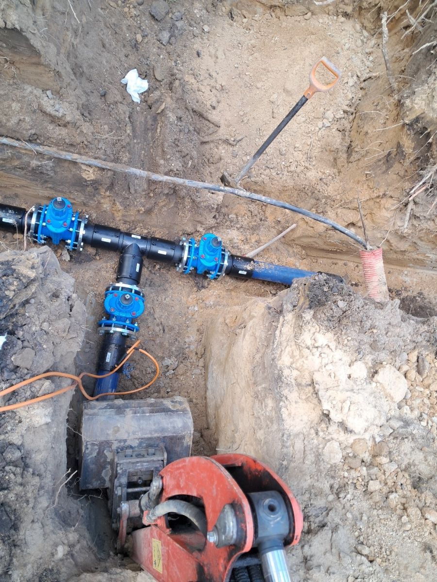 - Przełączenie budynków - przełączono 10 budynków mieszkalnych na nową sieć, a także zainstalowano indywidualne zasuwy na każdym przyłączu, co daje możliwość odcięcia dopływu wody do poszczególnych gospodarstw domowych.