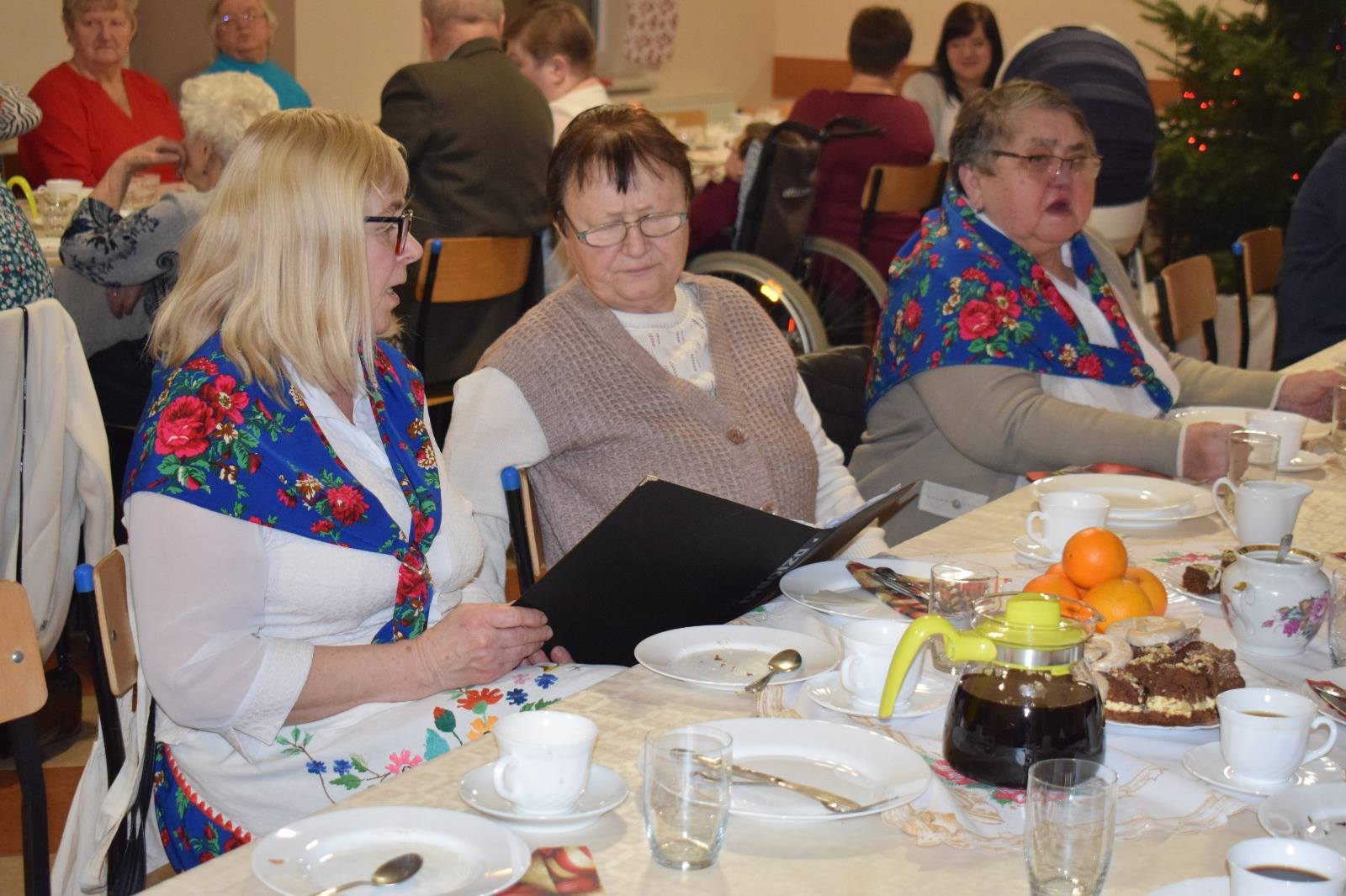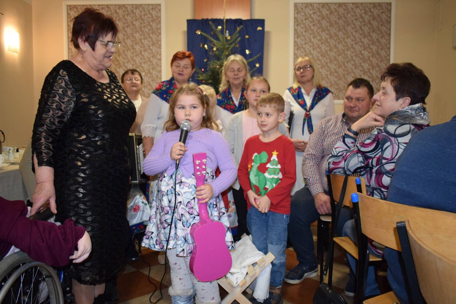 Ta część spotkania upłynęła przy poczęstunku ciastem, kawą i makówką, której nie może zabraknąć na żadnym wigilijnym stole. Kolędy śpiewał zespół Dzióbki wspólnie z dziećmi z rodzin Styrnol i Kierot oraz solistka – Marcelinka Kierot. Miłym akcentem było złożenie życzeń i odśpiewanie „Sto lat” jubilatce – obchodzącej 90. urodziny pani Krystynie Niedzieli, najstarszej uczestniczce wigilijnego spotkania.