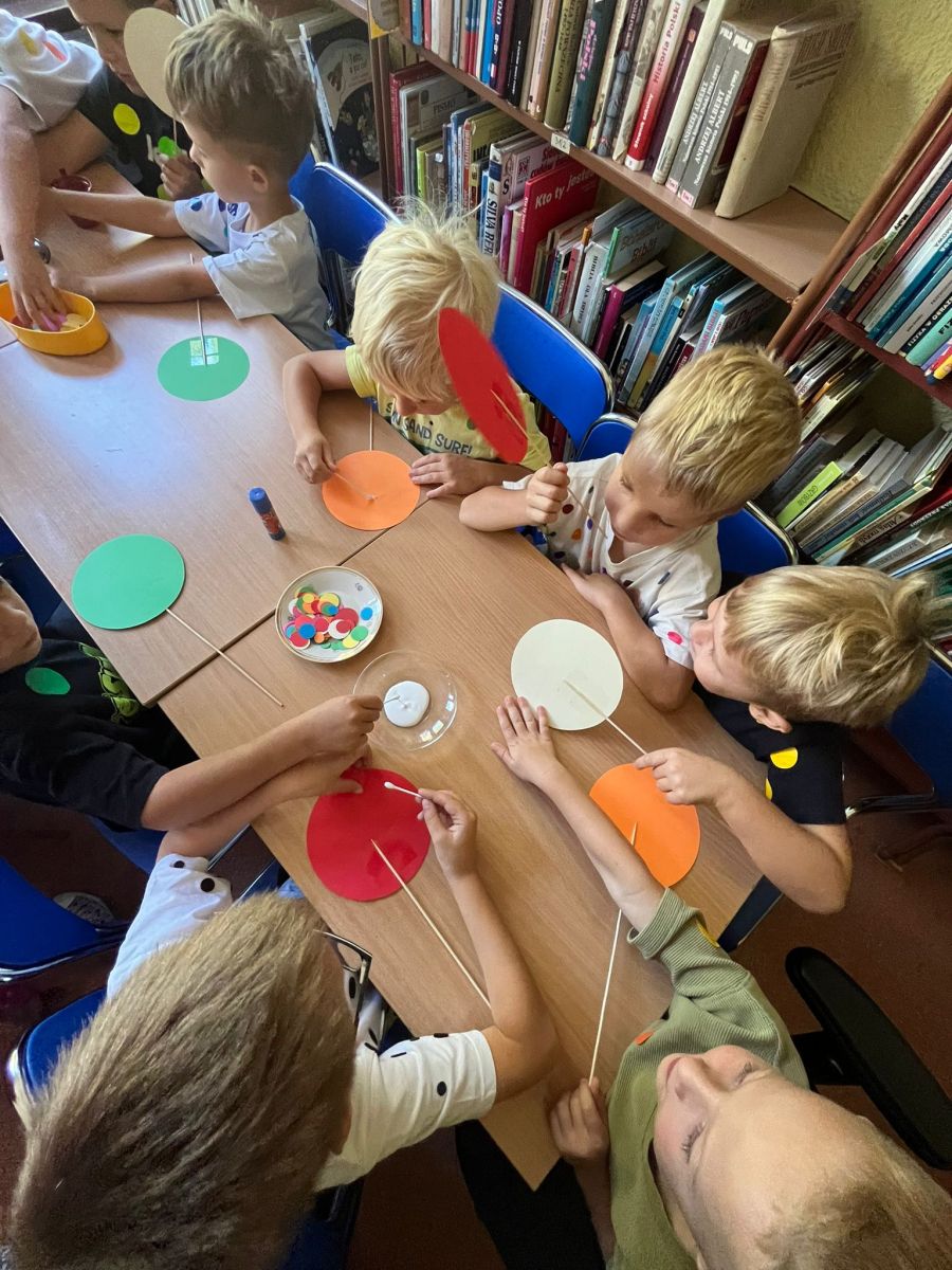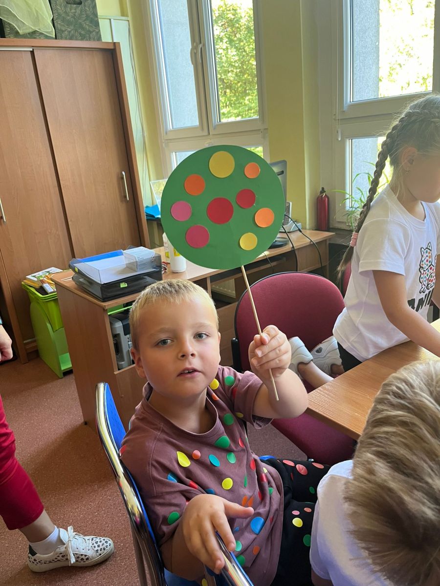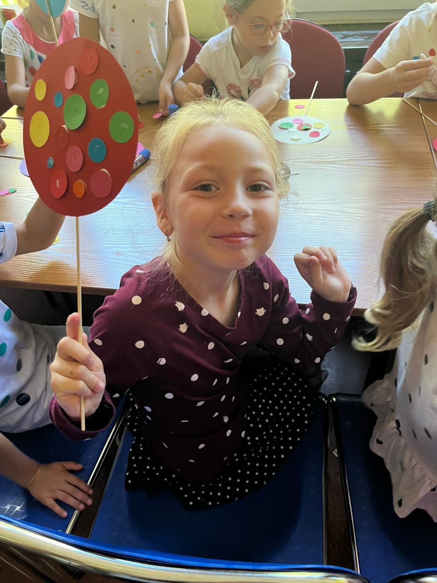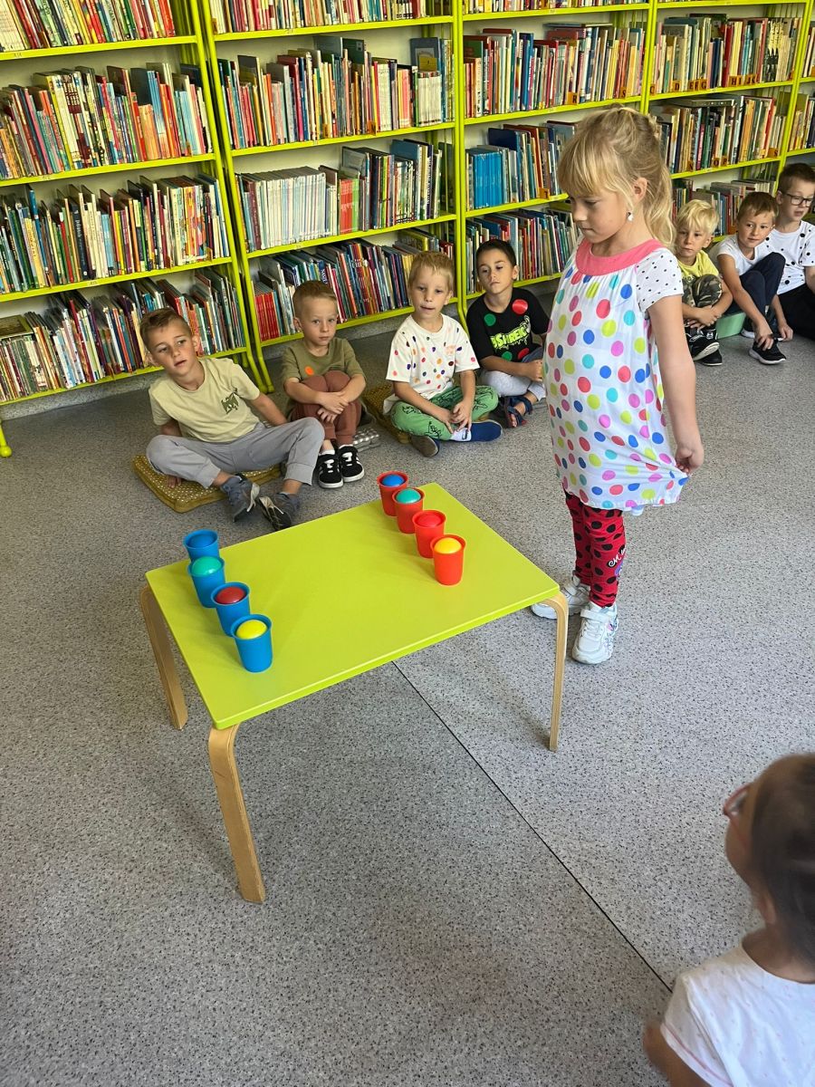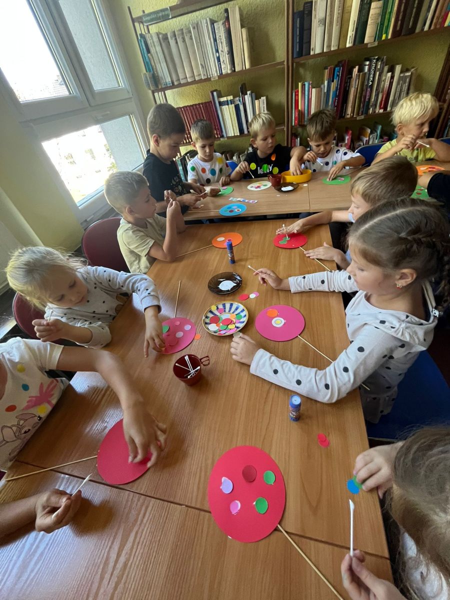 Przedszkolaki z Przedszkola Publicznego nr 1 w Ozimku grupa ,,Witaminki’’ wybrały się do Biblioteki Dziecięcej w Ozimku na zajęcia z okazji DNIA KROPKI gdzie spędziły bardzo miło czas. Inicjatorem tego święta jest Peter H. Reynolds autor książki: ,,The Dot” czyli ,,Kropka”, autor opowiada w niej historię małej dziewczynki Vashtii, która dzięki nauczycielce plastyki uwierzyła w siebie i poznała swój talent, a wszystko zaczęłosię…od malutkiej kropki. Hasłem towarzyszącym świętowaniu jest kreatywność zabawa i odwaga.Nie zabrakło tego również i w naszej bibliotece. Panie Magdalena Spyra –Trybulska i Ewa Domanasiewicz o to zadbały. Na początku dzieci wysłuchały książki pt.,,Nciśnij mnie” Tullet Herve. To książka ,którą trzeba przekręcać, na którą trzeba dmuchać, której trzeba klaskać. Następnie dzieci po wykonaniu różnych zadań musiały znaleźć kluczyk do skrzyni, gdzie czekała na nich słodka niespodzianka. Przedszkolaki rzucały kółkami na pachołki, skakały według podanego kodu na planszy z kropkami, nastepnie panie sprawdzały koncentrację dzieci poprzez ułożenie kolorowych piłeczek w kubeczkach zadaniem dzieci było odtworzenie zakrytego wzoru w pustych kubeczkach. Na koniec dzieci wykonały pracę plastyczną-okrągły lizak na patyku.Dziękujemy paniom za ich zaangażowanie, kreatywność i ciepłe przyjęcie. Podczas zajęć dzieci mogły odkrywać swoje talenty, rozwijać wyobraźnię, przełamywać nieśmiałość, a przede wszystkim miło spędziły czas. Już nie możemy doczekać się kolejnego zaproszenia.