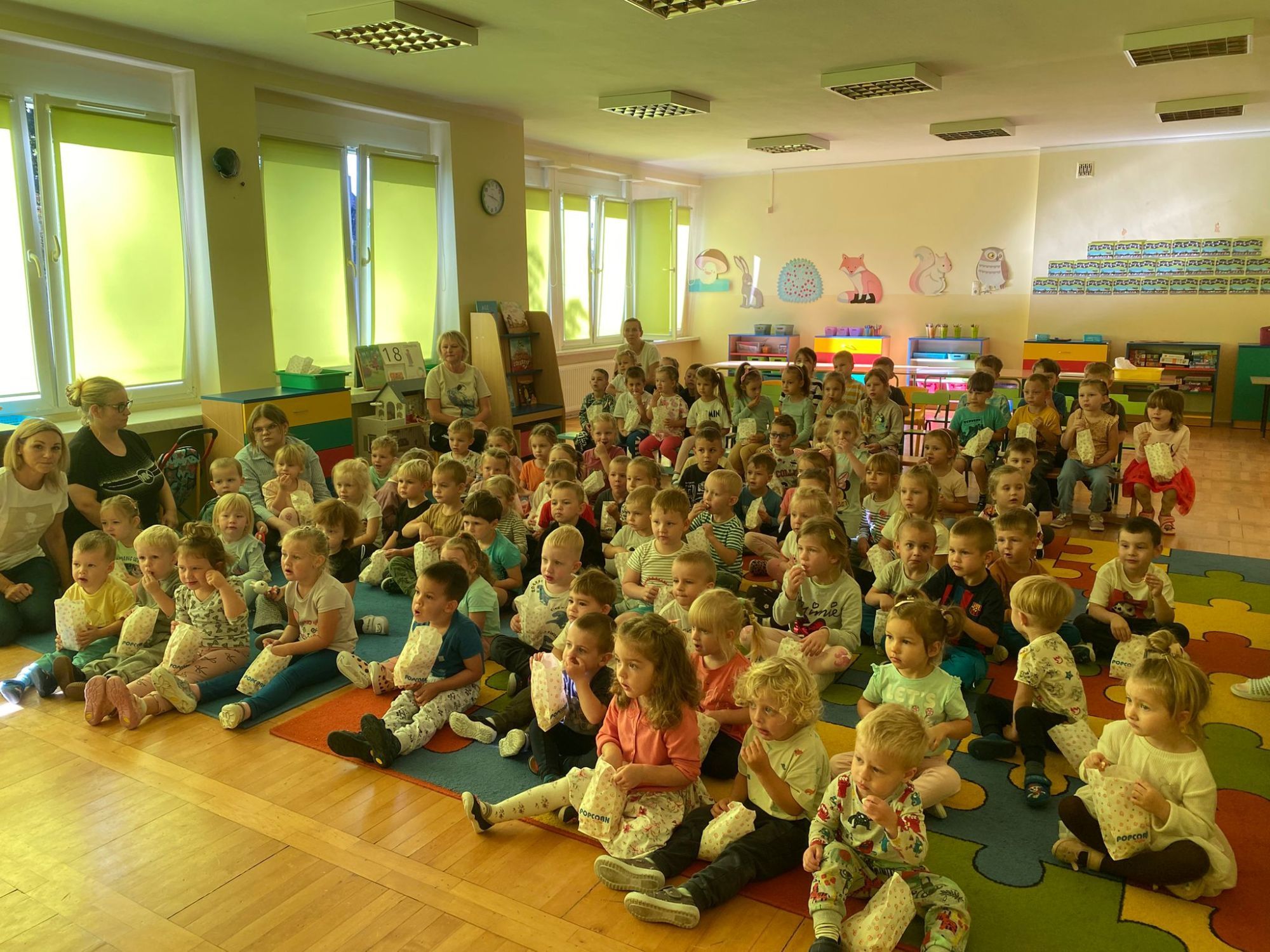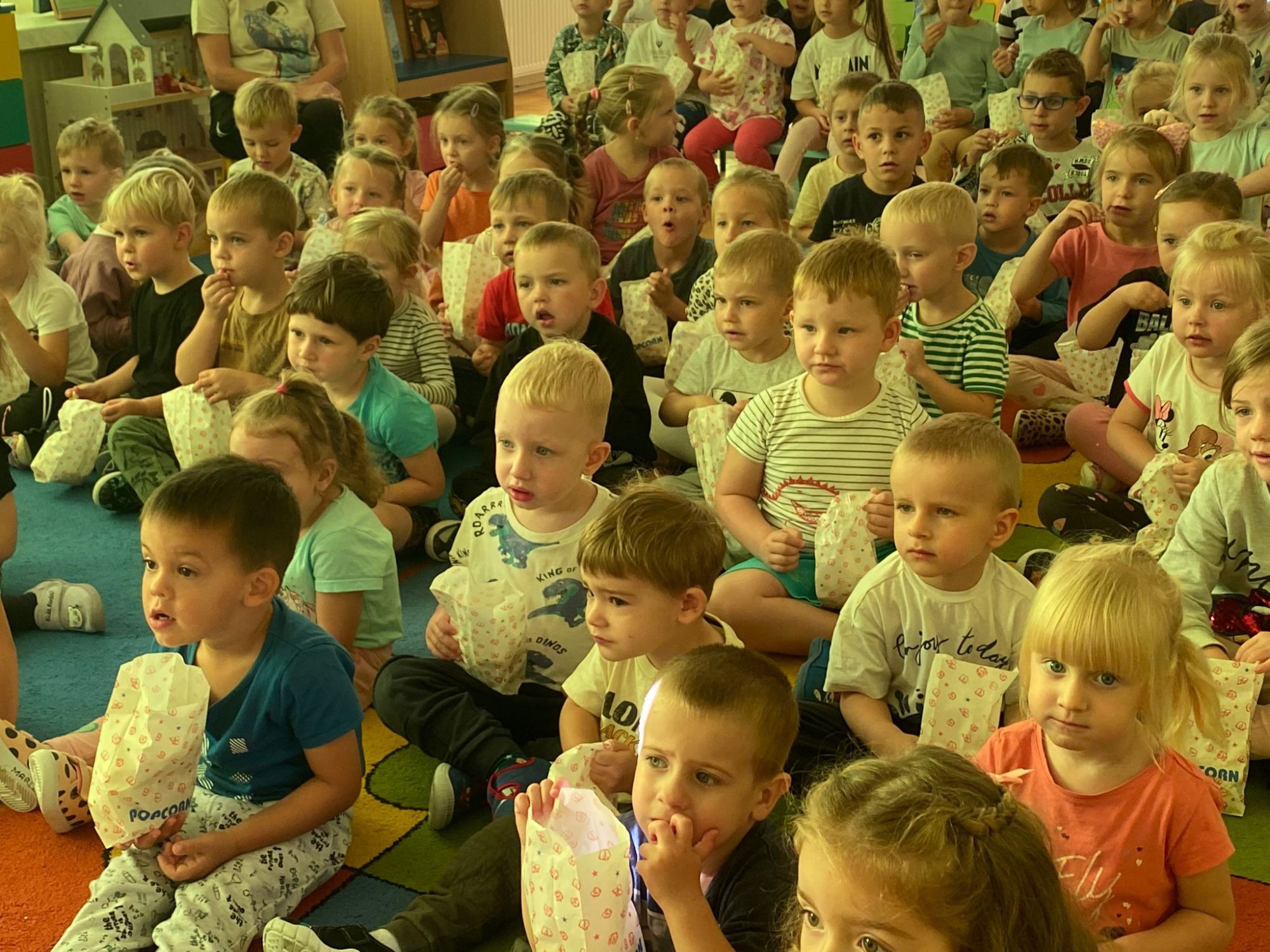 18 września w naszym przedszkolu odbył się wyjątkowy dzień – Dzień Przedszkolaka! To święto, które co roku przynosi dzieciom mnóstwo radości, śmiechu i niezapomnianych wspomnień.Obchody rozpoczęły się od wspólnego oglądania bajki pt „Pszczółka Maja”. Dzieci z ogromnym zaciekawieniem śledziły przygody znanej bohaterki, a seans umilił im pyszny popcorn, który wywołał uśmiechy na wielu twarzach.