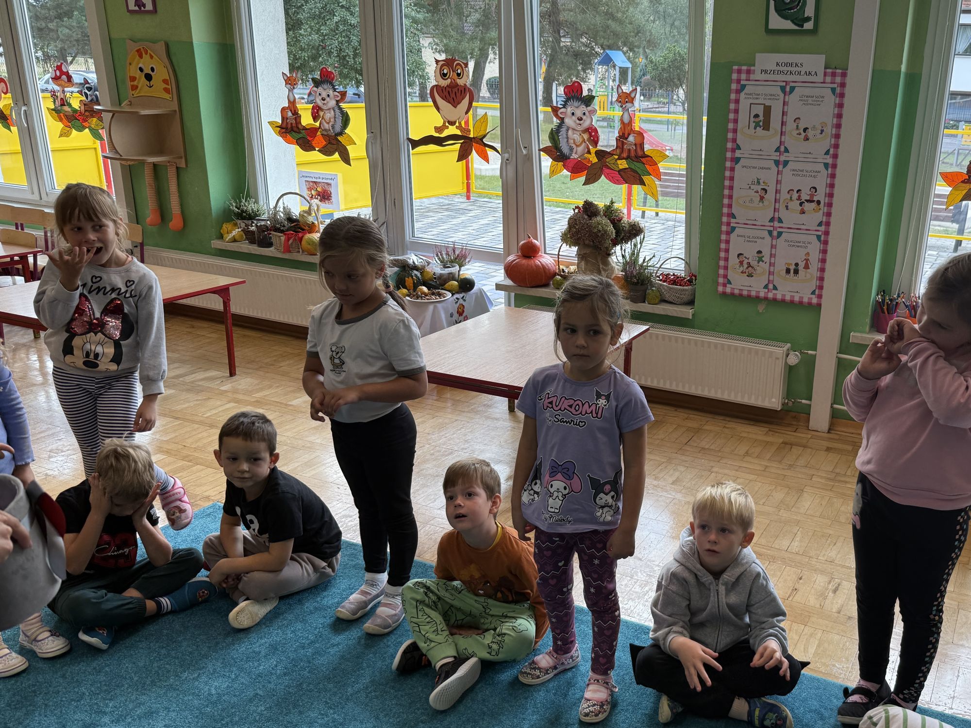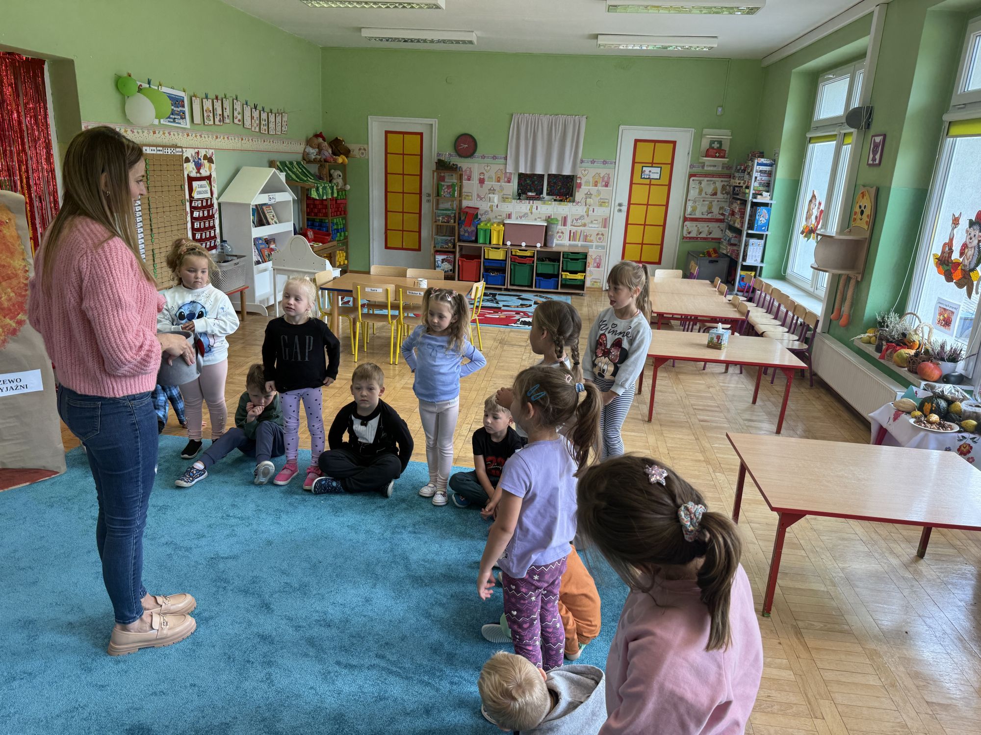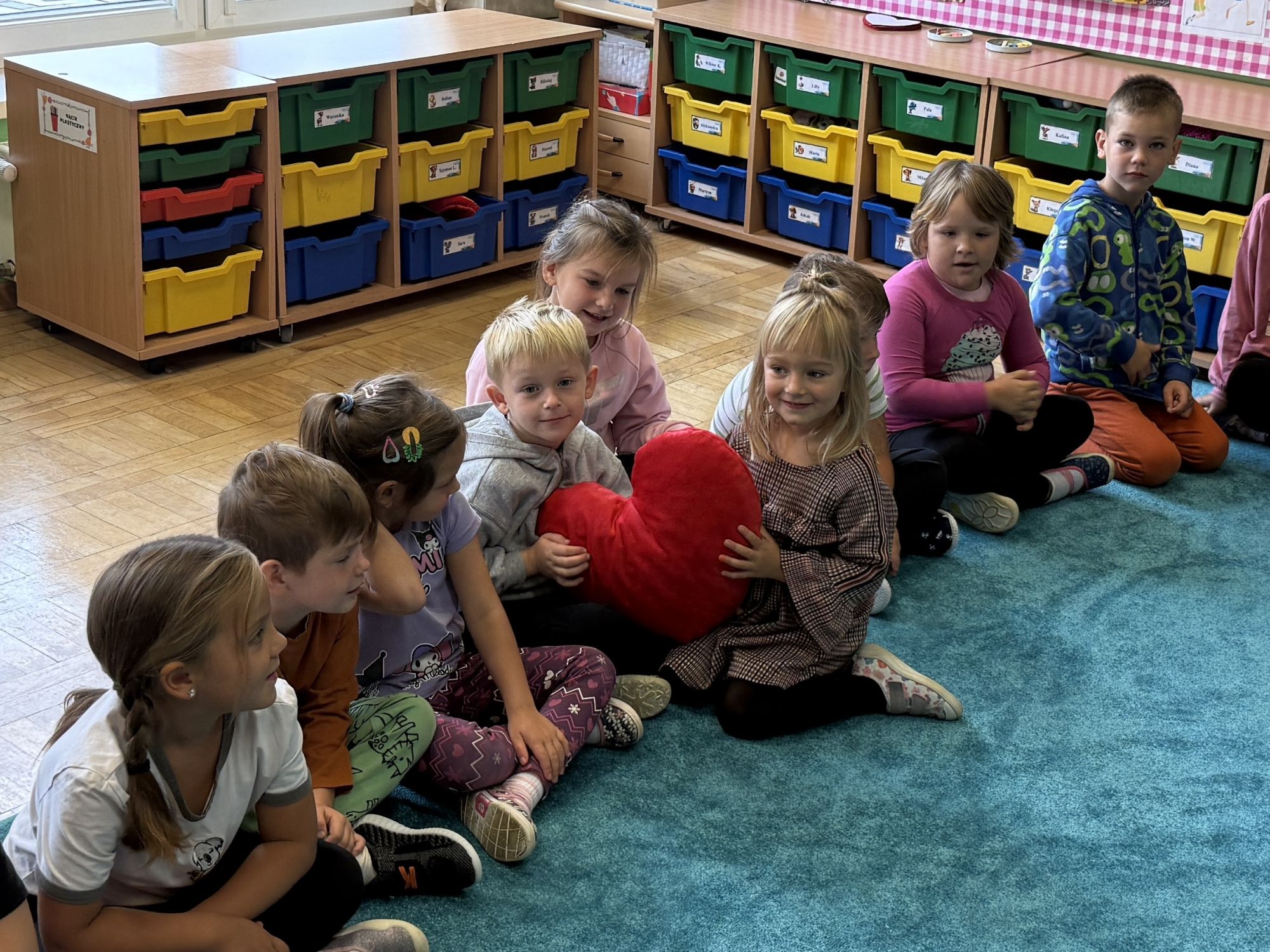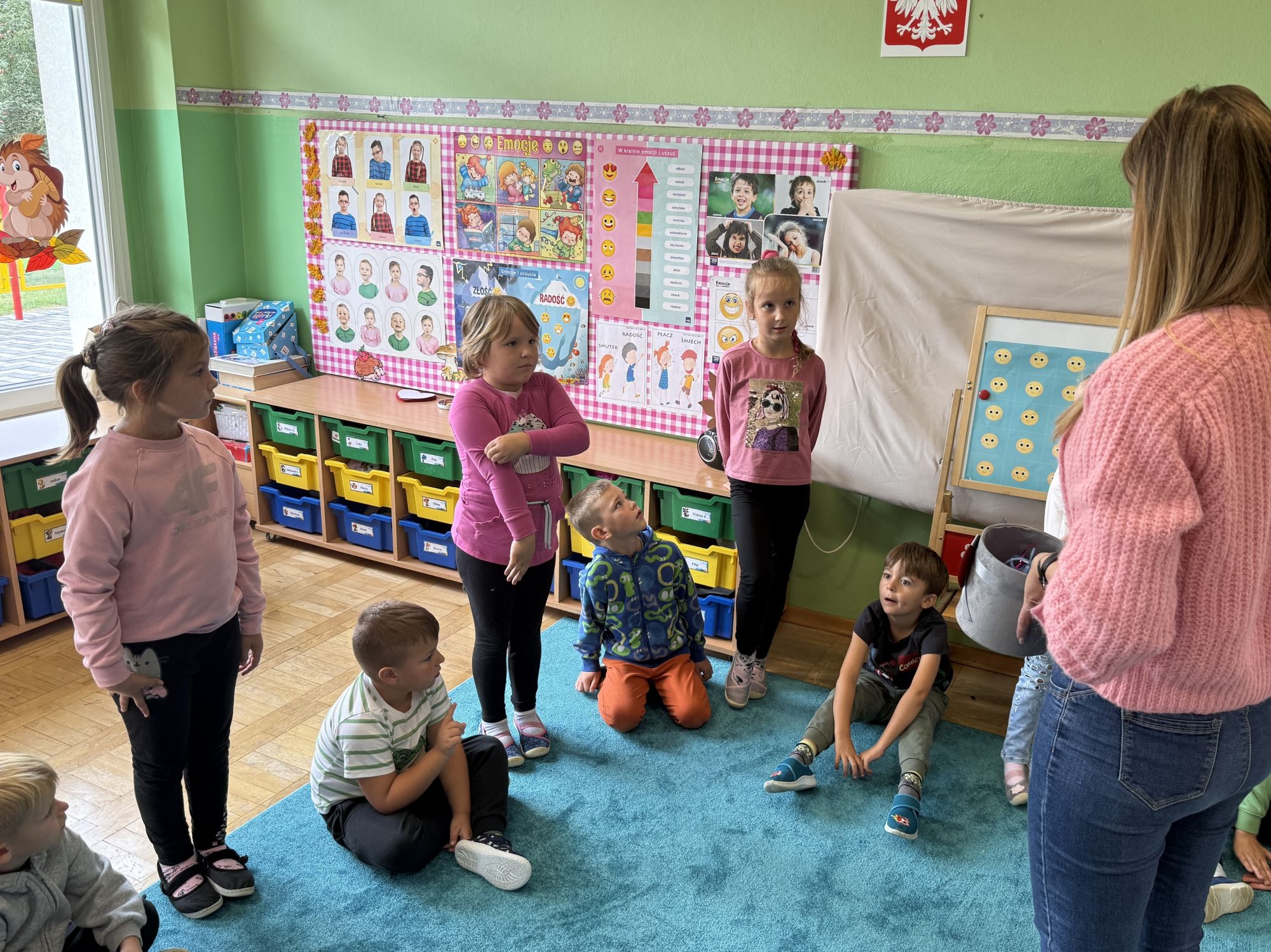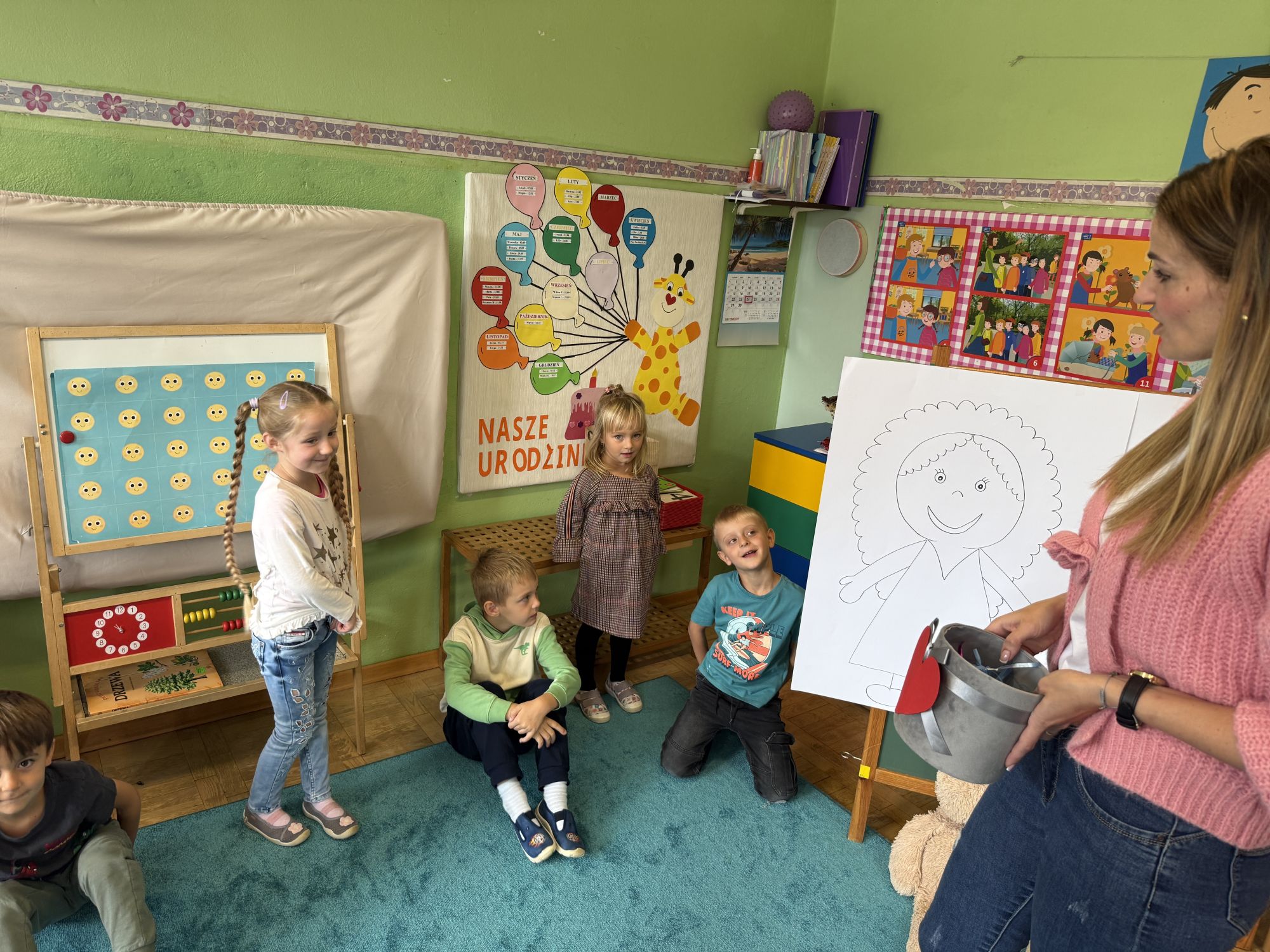 29 września w starszej grupie naszego przedszkola odbył się wyjątkowy dzień – „Dzień Dobrego Serduszka”, zorganizowany w ramach Tygodnia Dobrych Relacji. Była to okazja do rozmów, zabawy i wspólnej refleksji nad tym, co to znaczy mieć dobre serce i jak budować wartościowe przyjaźnie. Dzieci rozpoczęły zajęcia od burzy mózgów, podczas której wspólnie zastanawiały się, co oznacza bycie osobą o dobrym sercu. Następnie wysłuchały pięknej bajki pt. „Serduszko małego misia”. Opowieść stała się punktem wyjścia do rozmowy o miłości, przyjaźni i odwadze – wartościach szczególnie ważnych w codziennym życiu przedszkolaka. Aby lepiej zrozumieć treść bajki, dzieci ułożyły gałązkę logiczną, porządkując kolejno wydarzenia i ukazując ich sens. Nie zabrakło również aktywności rozwijających relacje rówieśnicze. Podczas zabawy „Wędrujące serduszko” dzieci mówiły sobie nawzajem coś miłego, ucząc się dostrzegać i doceniać innych. Odgrywały różne scenki dramowe, w których wyrażały emocje za pomocą ruchu i mimiki. Radosnym akcentem był udział w tańcach w parach oraz zabawach integrujących grupę. Szczególną atrakcją była praca plastyczna – dzieci w grupach kolorowały duże obrazki przedstawiające dziewczynkę i chłopca, a następnie rozmawiały o tym, jaki powinien być dobry kolega i dobra koleżanka. Dzięki temu mogły nie tylko rozwijać swoją kreatywność, ale także uświadomić sobie, jak ważne są pozytywne cechy w budowaniu przyjaźni. Powstało również niezwykłe Drzewo Przyjaźni – każde dziecko narysowało na serduszku siebie i swojego przyjaciela z grupy, a następnie zawiesiło je na wspólnym drzewie. Na zakończenie pełnego wrażeń dnia dzieci otrzymały wyjątkowe medale z napisem „Jestem dobrym kolegą/koleżanką”. Była to piękna nagroda za zaangażowanie, życzliwość i otwarte serca.