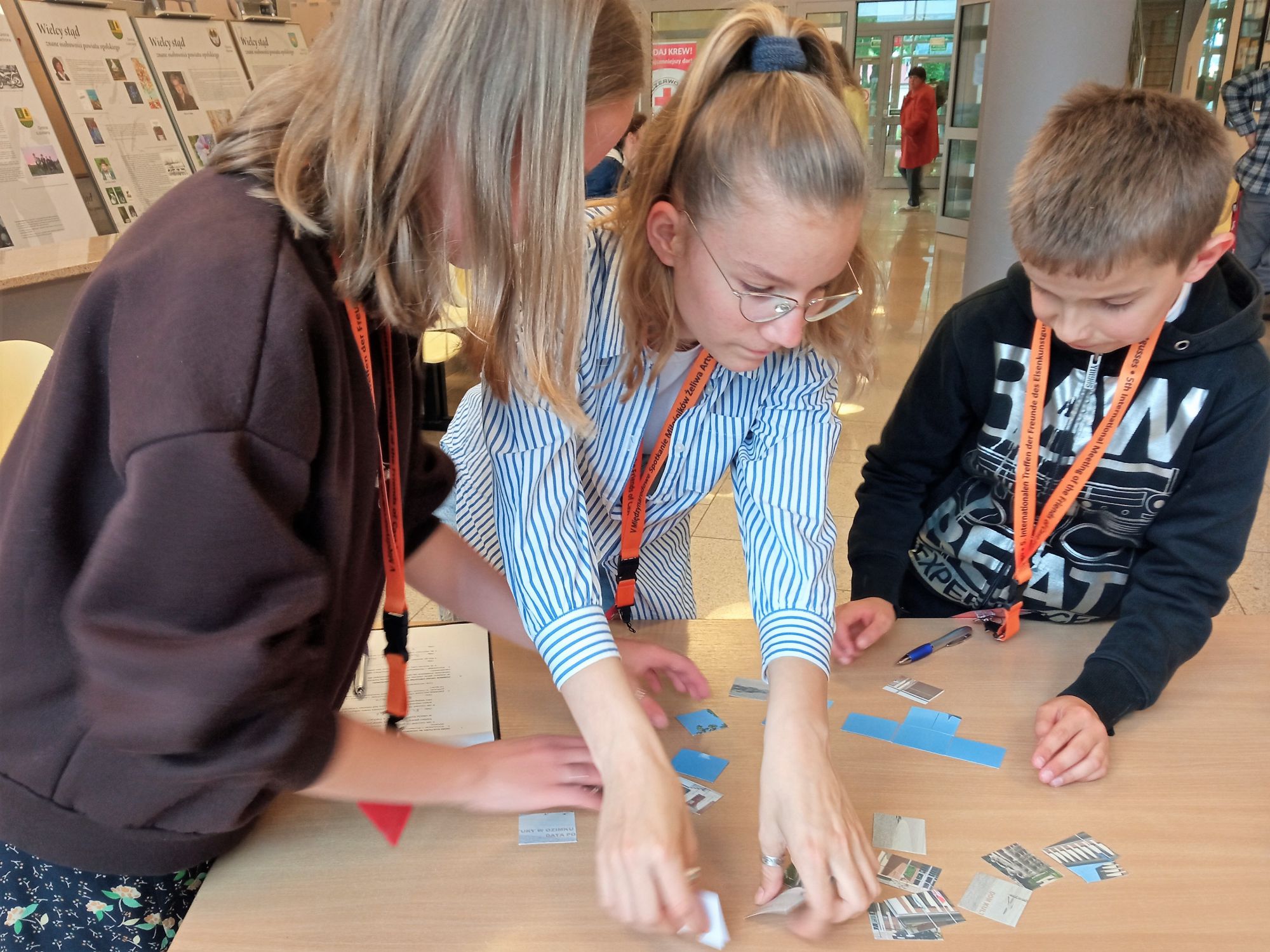 Ostatnim etapem było złożenie prac z gotowymi odpowiedziami i odebranie podziękowań wraz z małymi upominkami.
