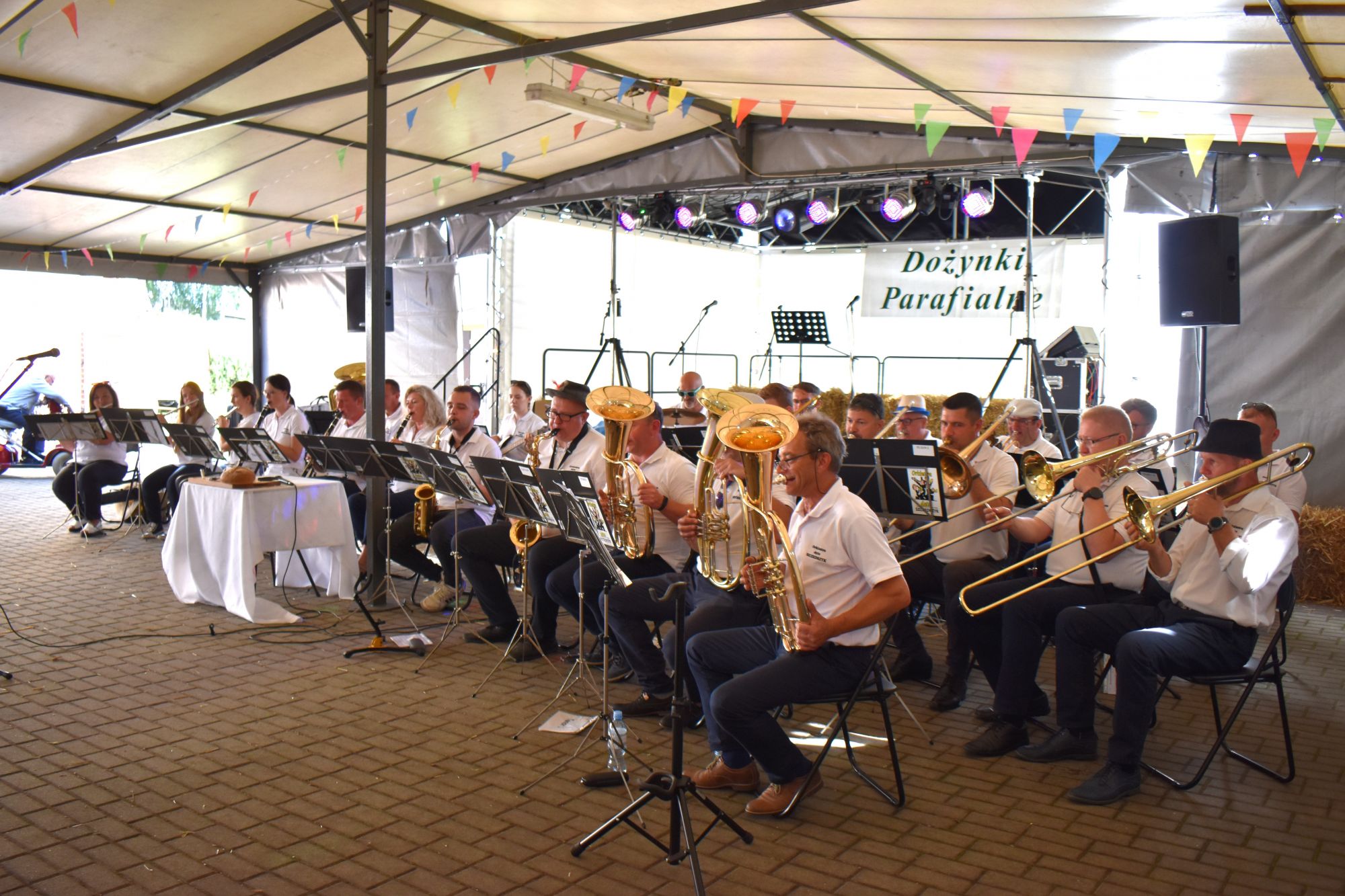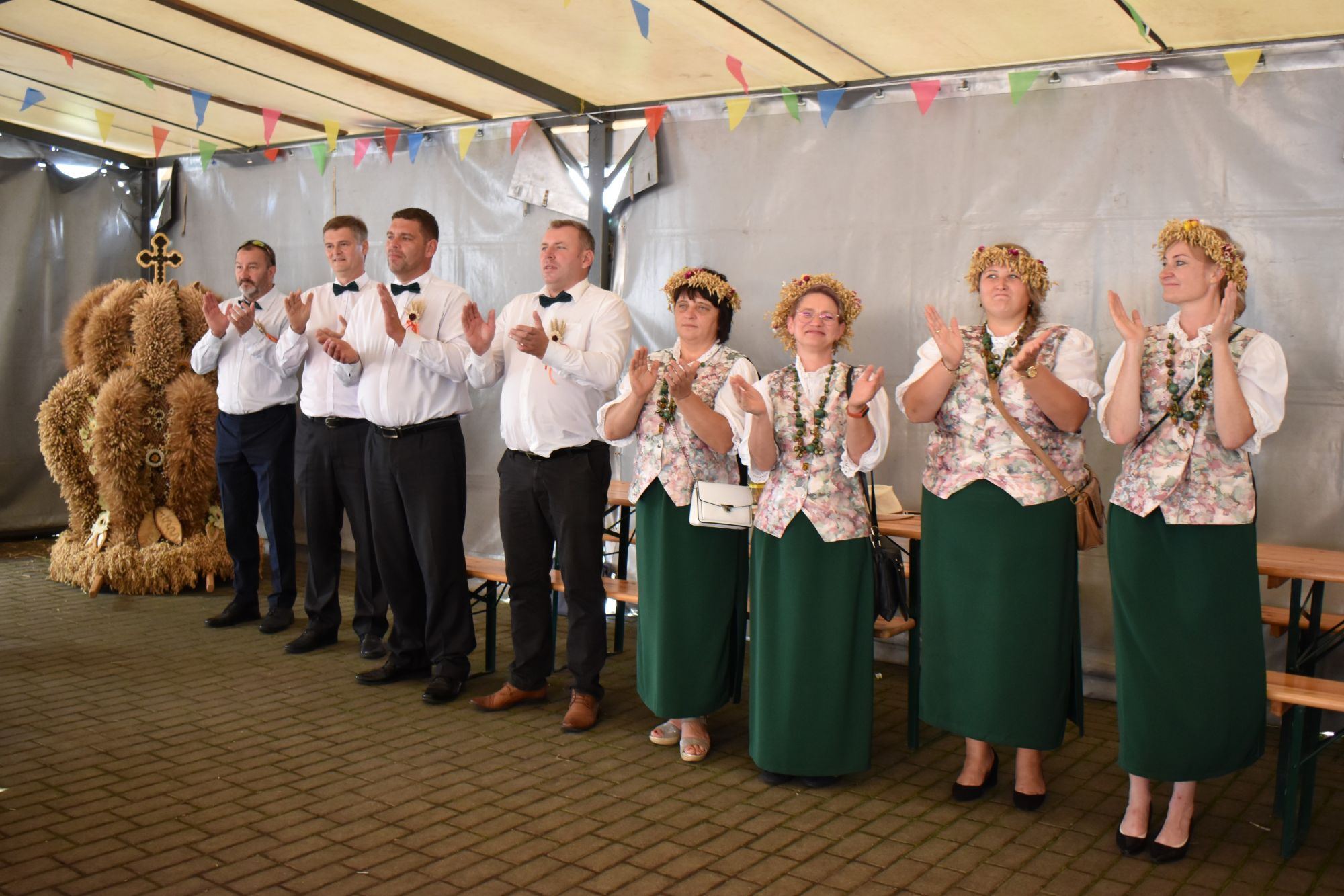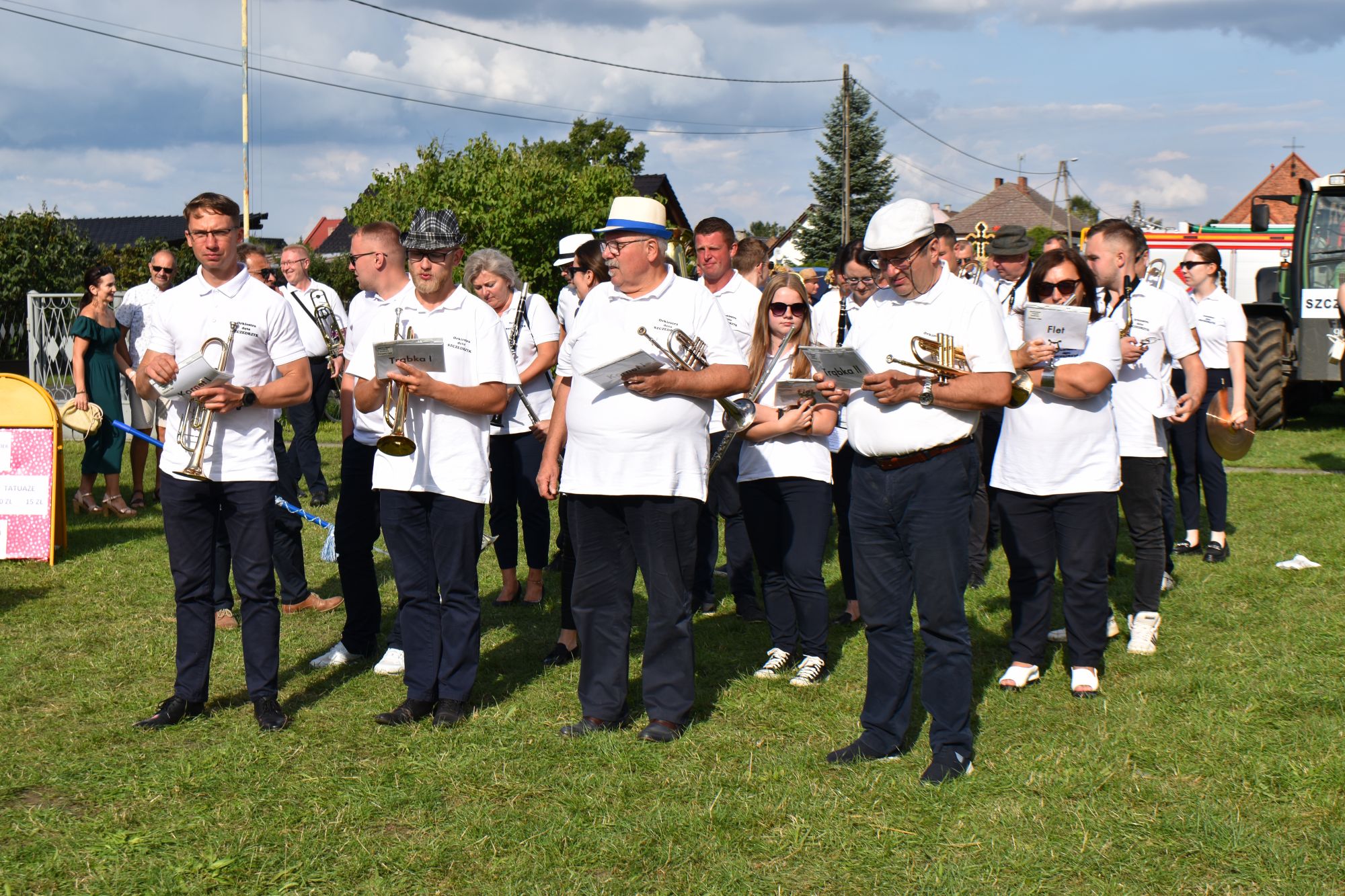 Członkowie Rady Sołeckiej ceremonialnie wnieśli koronę dożynkową z asystą Orkiestry Dętej Szczedrzyk. Starostowie dożynek Rafał Joniec i Natalia Franczyk przekazali Burmistrzowi Ozimka Mirosławowi Wieszołkowi chleb dożynkowy, który podzielono sprawiedliwie wśród zgromadzonych. Następnie rozpoczęła się część artystyczna, podczas której wystąpili: Orkiestra Dęta Szczedrzyk, chór Dan Berg oraz artyści Studia eM.