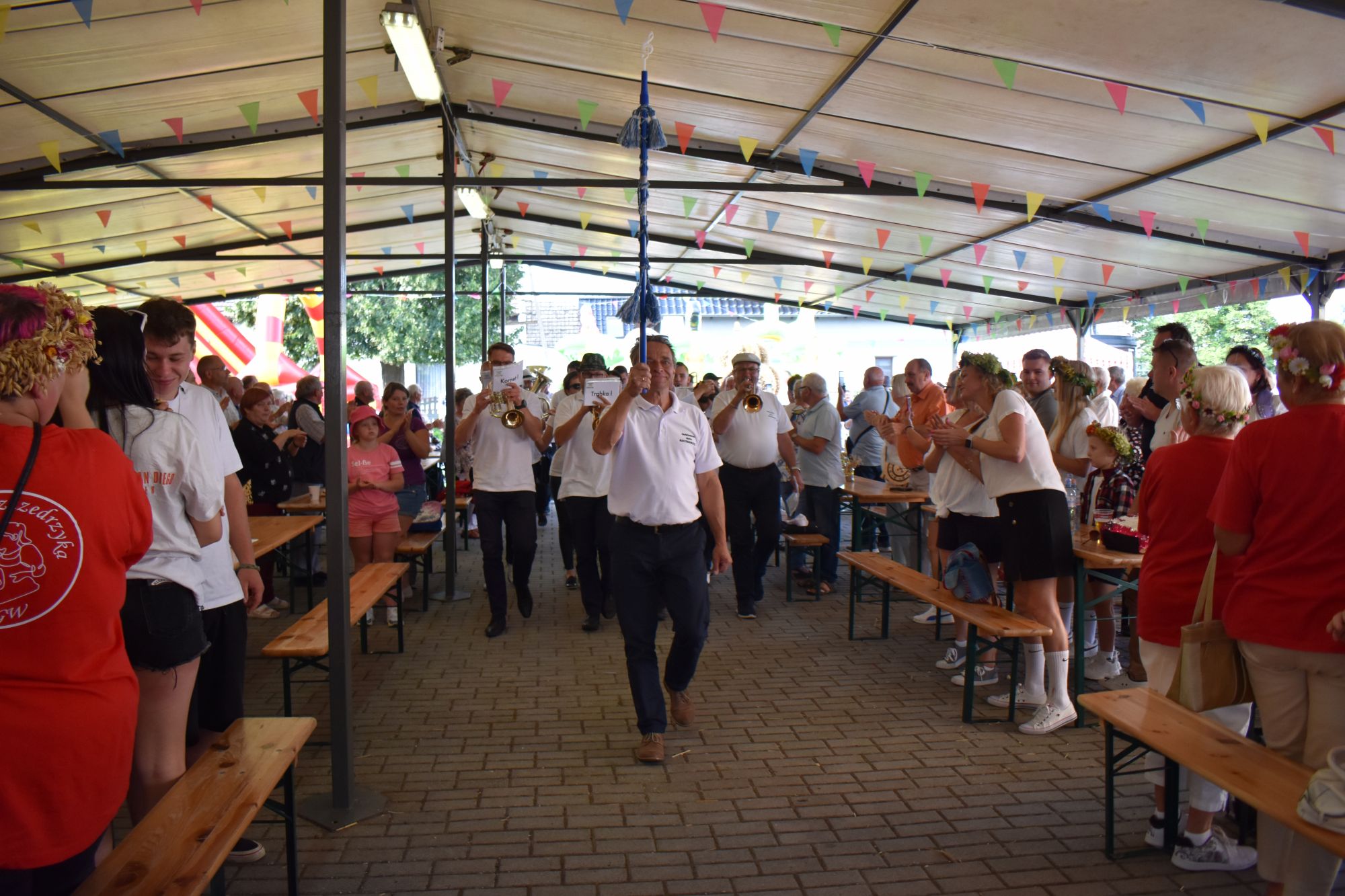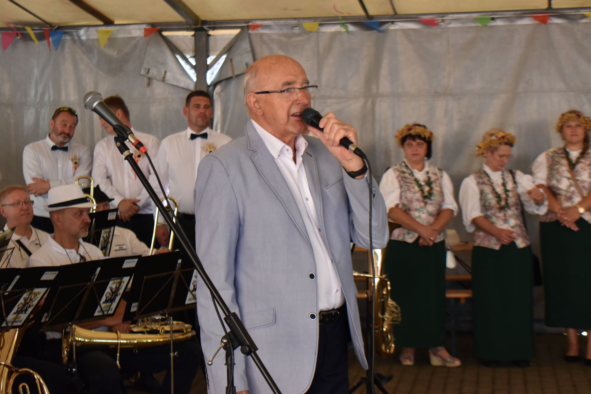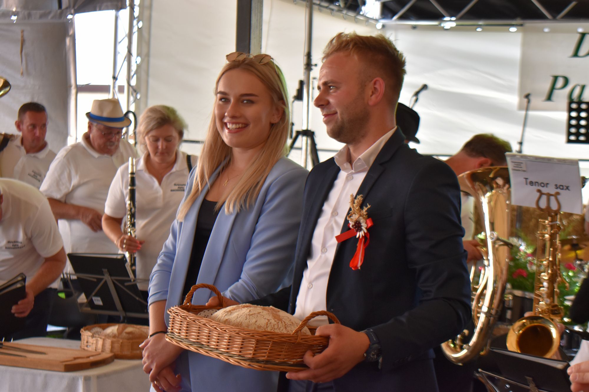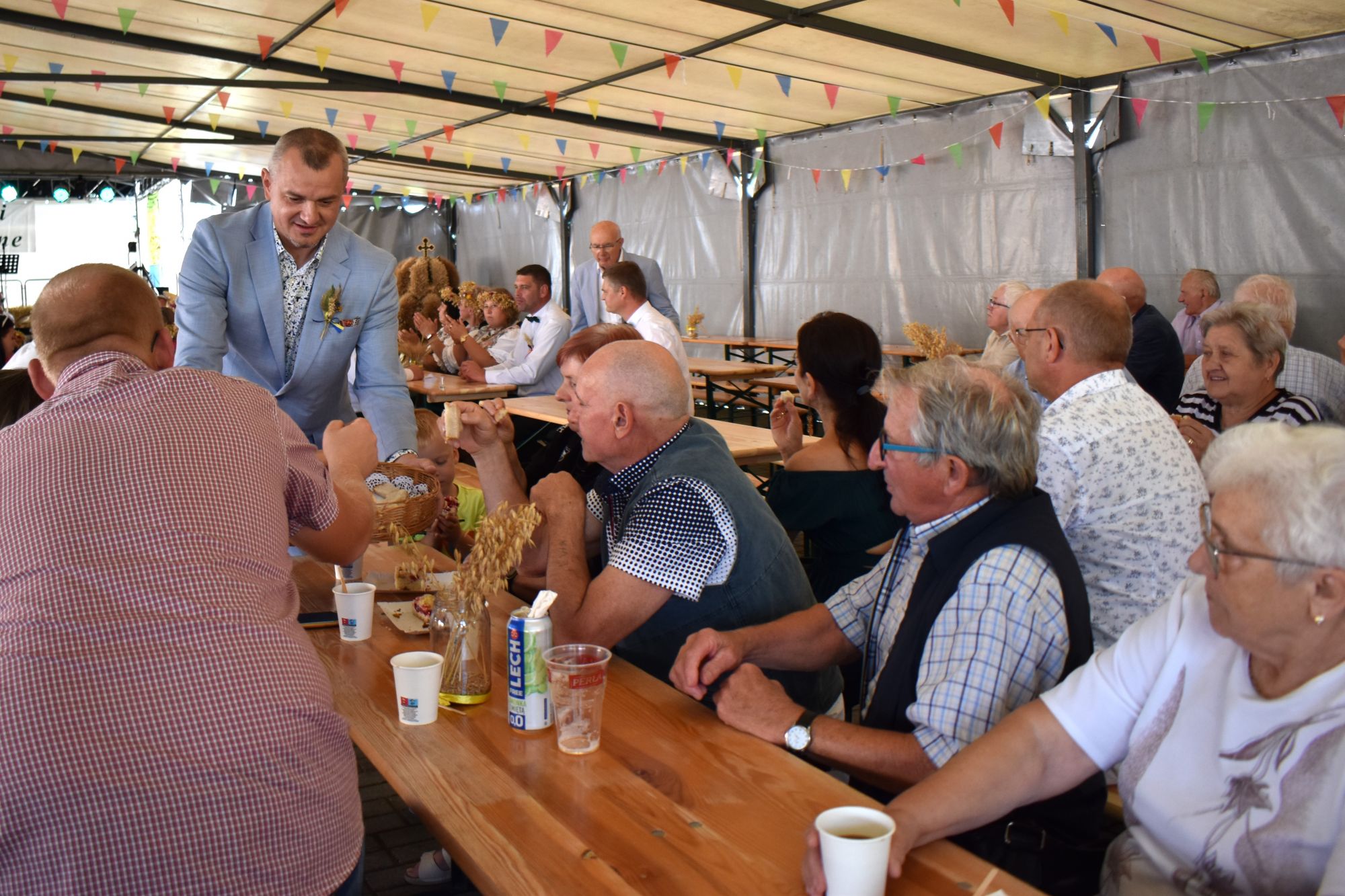 Członkowie Rady Sołeckiej ceremonialnie wnieśli koronę dożynkową z asystą Orkiestry Dętej Szczedrzyk. Starostowie dożynek Rafał Joniec i Natalia Franczyk przekazali Burmistrzowi Ozimka Mirosławowi Wieszołkowi chleb dożynkowy, który podzielono sprawiedliwie wśród zgromadzonych. Następnie rozpoczęła się część artystyczna, podczas której wystąpili: Orkiestra Dęta Szczedrzyk, chór Dan Berg oraz artyści Studia eM.