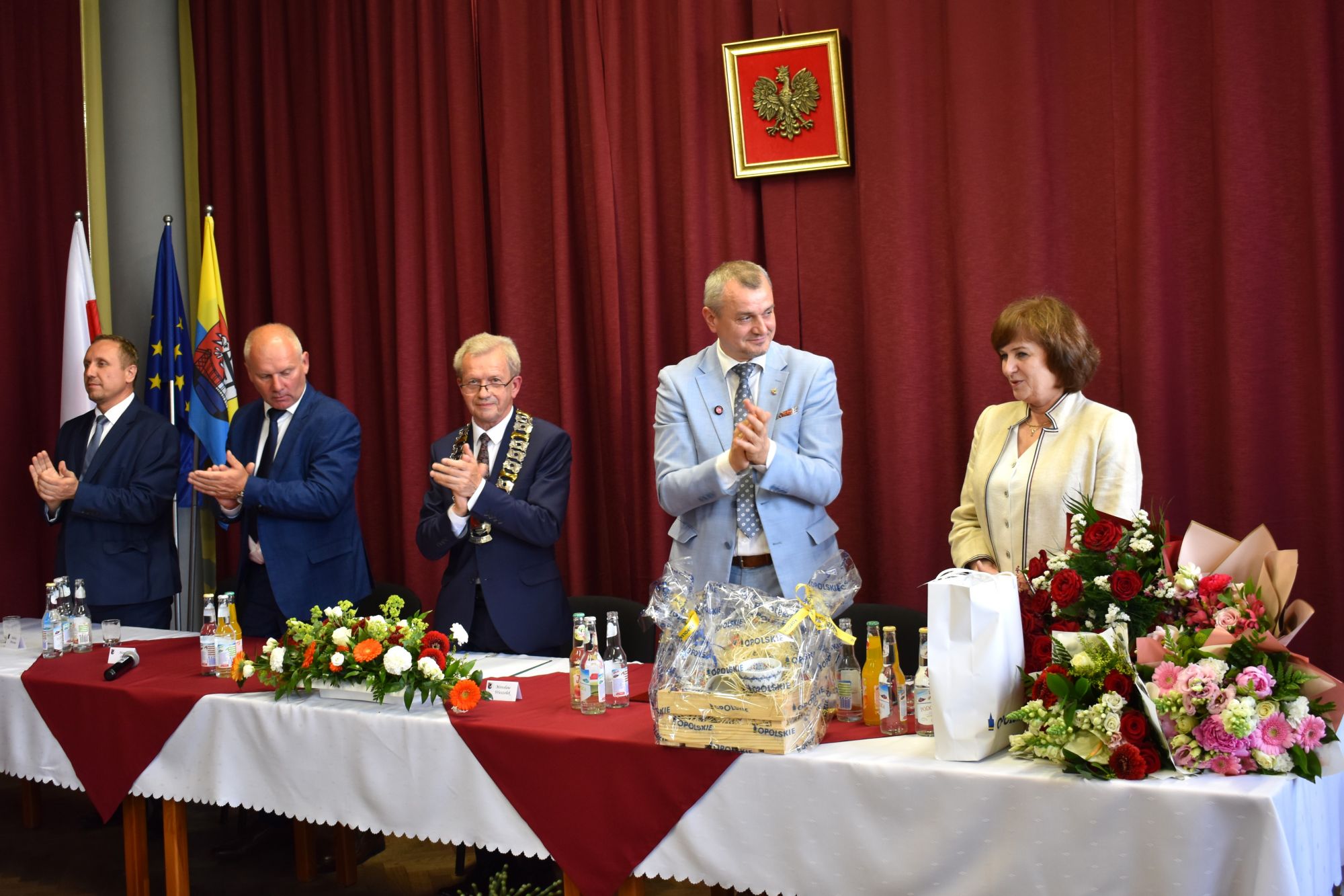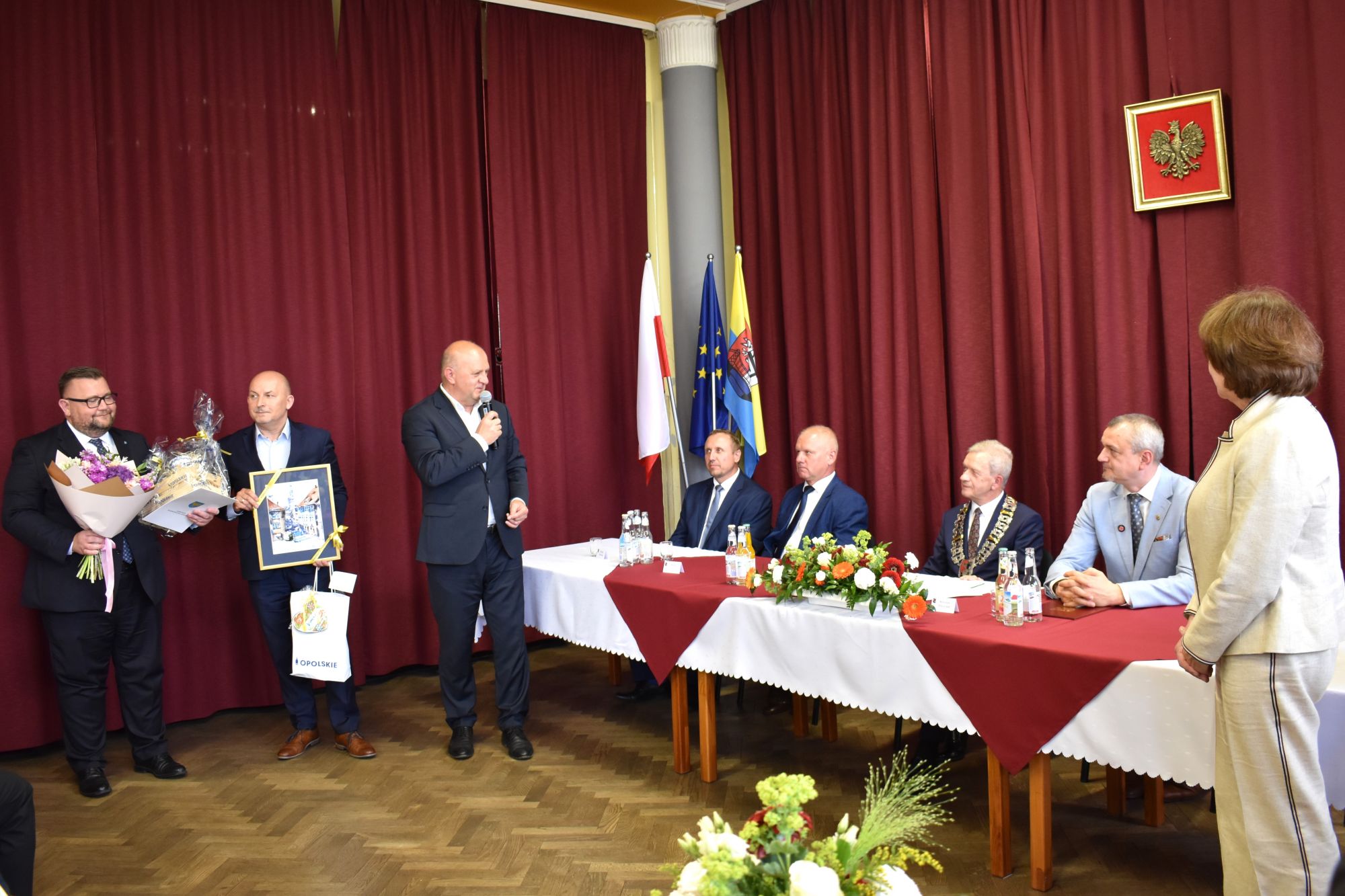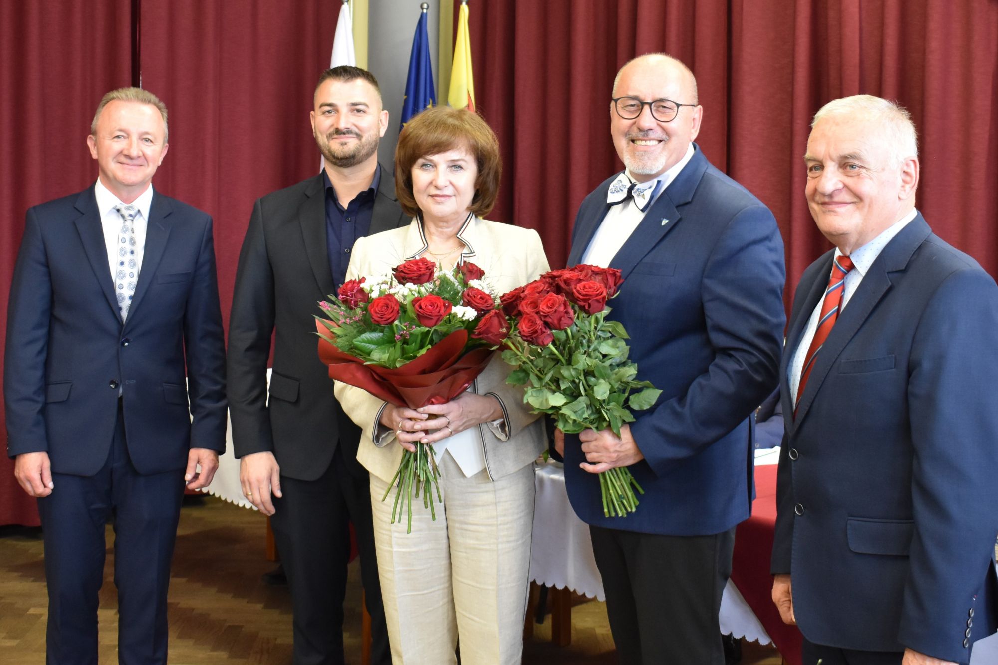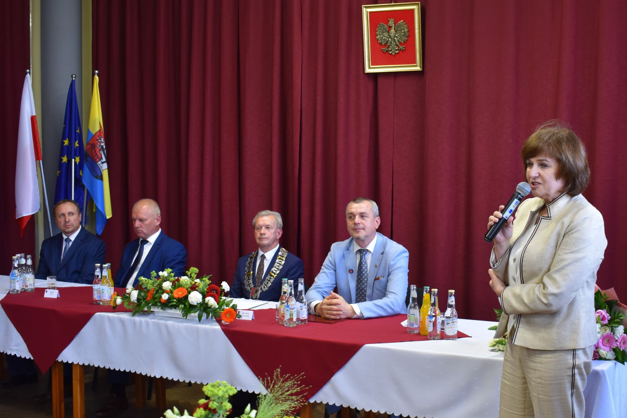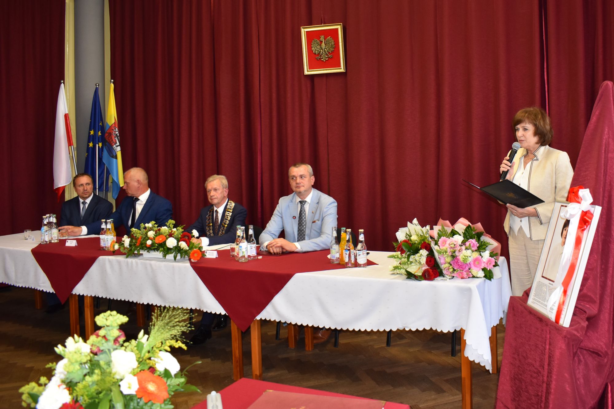 Burmistrz Ozimka Mirosław Wieszołek miał zaszczyt odczytać uzasadnienie, wymieniając najważniejsze zasługi odznaczonej. W imieniu Rady Miejskiej w Ozimku życzenia złożyli Przewodniczący Zygmunt Olbryt i Wiceprzewodniczący Marek Elis.