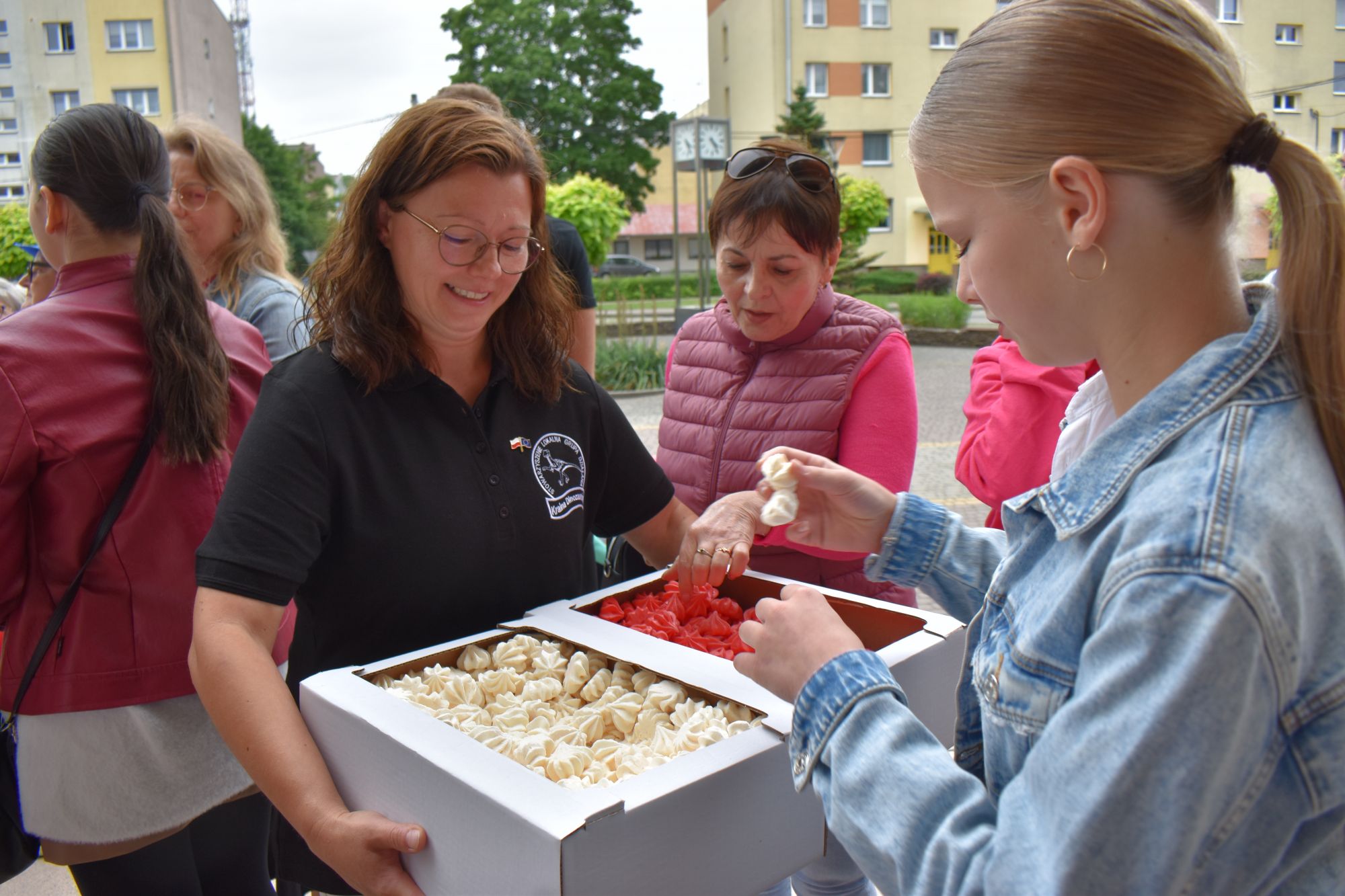Na koniec na uczestników wydarzenia czekał słodki poczęstunek - bezy w kolorze białym i czerwonym, które ochoczo rozdawała Karina Mrozek z LGD "Kraina Dinozaurów".