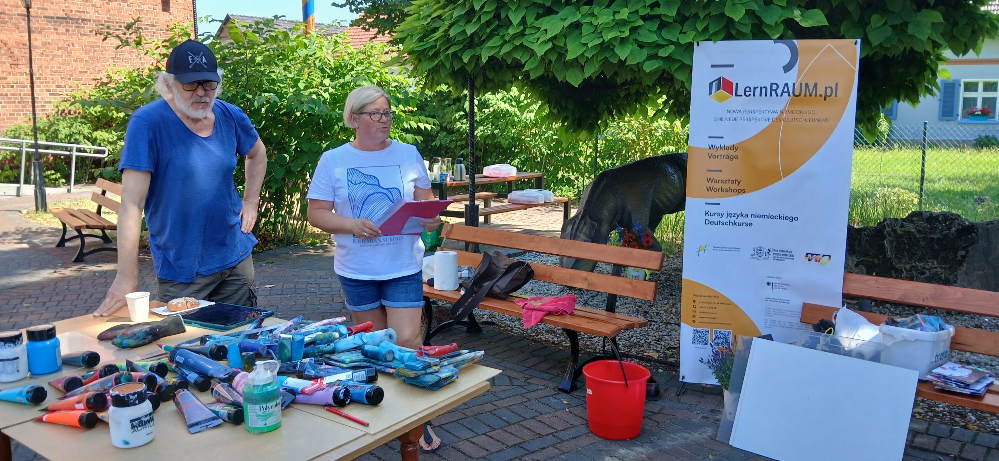 W sobotnie popołudnie, 5 lipca grupa mieszkanek Krasiejowa wzięła udział w plenerze malarskim i spotkaniu ze znanym opolskim artystą Romanem Schmelterem w ramach zajęć LernRaumu.