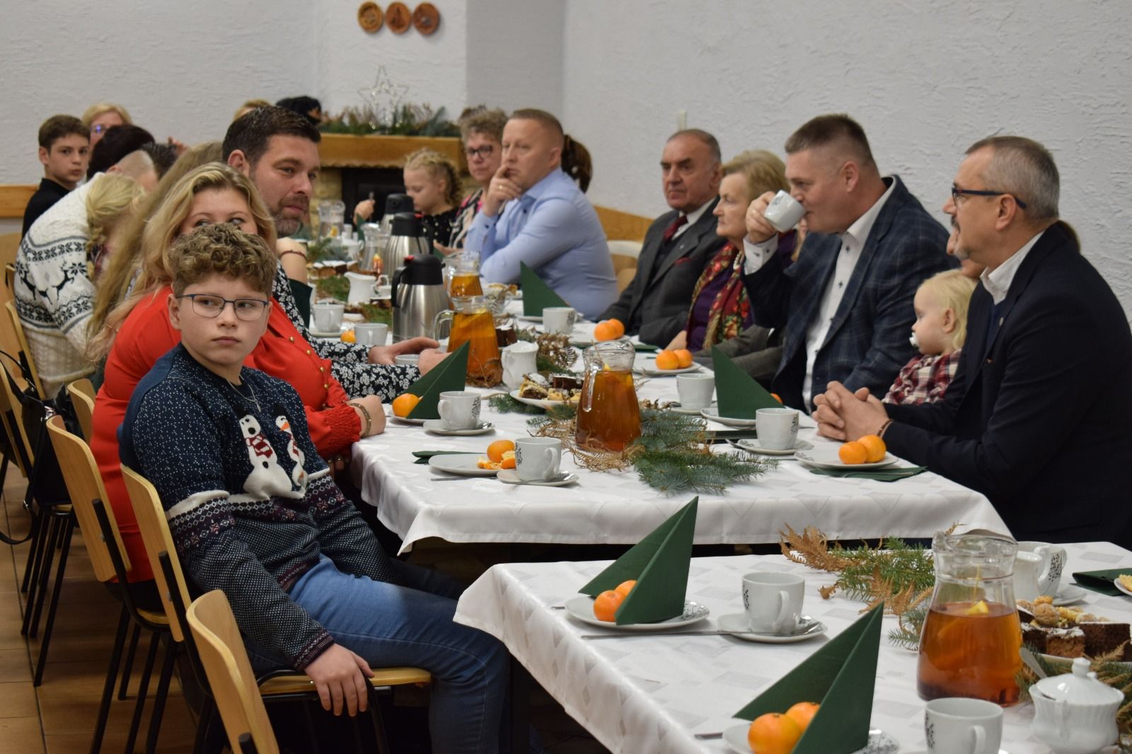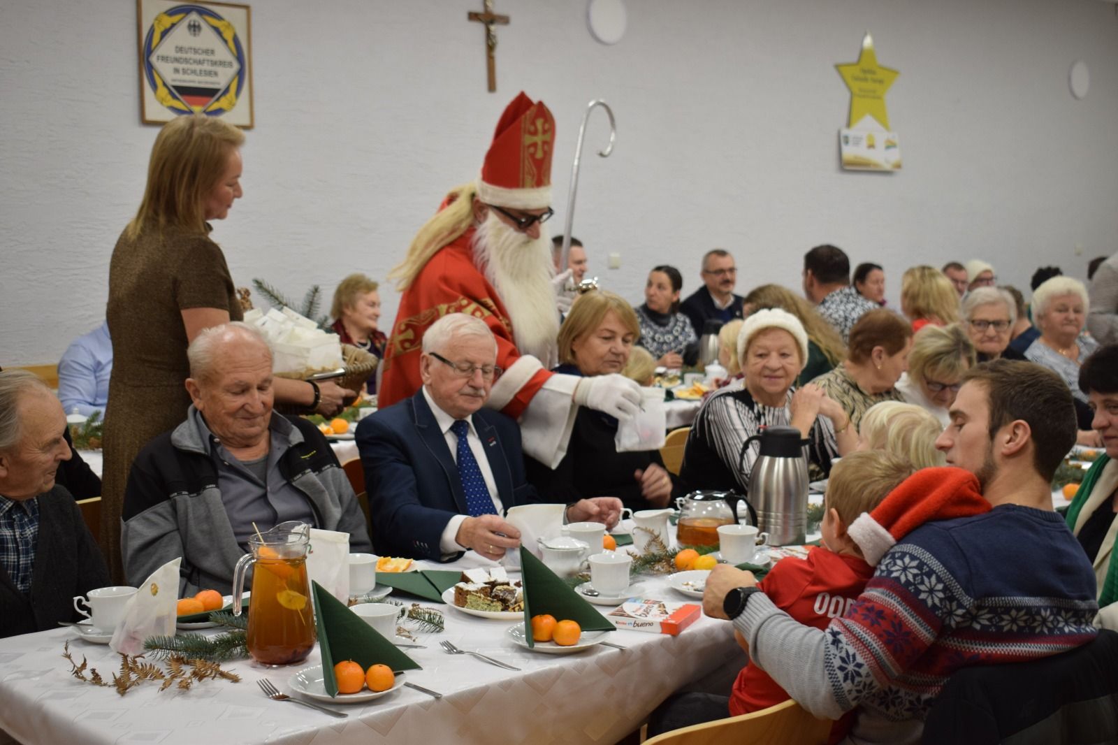 Popołudnie upłynęło w ciepłej, przedświątecznej atmosferze – przy rozmowach, kawie, herbacie, poczęstunku oraz wspólnej kolacji z wigilijnym barszczem i domowymi krokietami. Muzyczną oprawę stworzył Rajmund Wiecha z córką Weroniką, którzy grą na organach i skrzypcach oraz śpiewem polskich i niemieckich piosenek wprowadzili wszystkich w adwentowy nastrój.