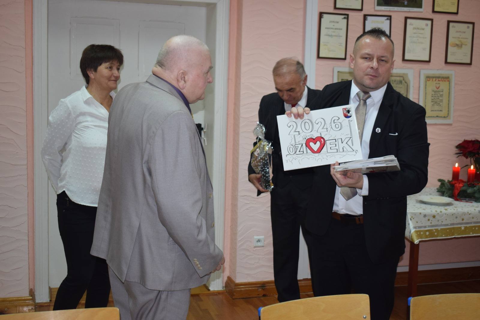 Przed zakończeniem spotkania każdy otrzymał świąteczny prezent spod choinki wręczony przez organizatorkę spotkania oraz kalendarz ścienny Gminy Ozimek na 2026, przekazany przez wiceburmistrza wraz ze świąteczno-noworocznymi życzeniami od Burmistrza Ozimka Mirosława Wieszołka.