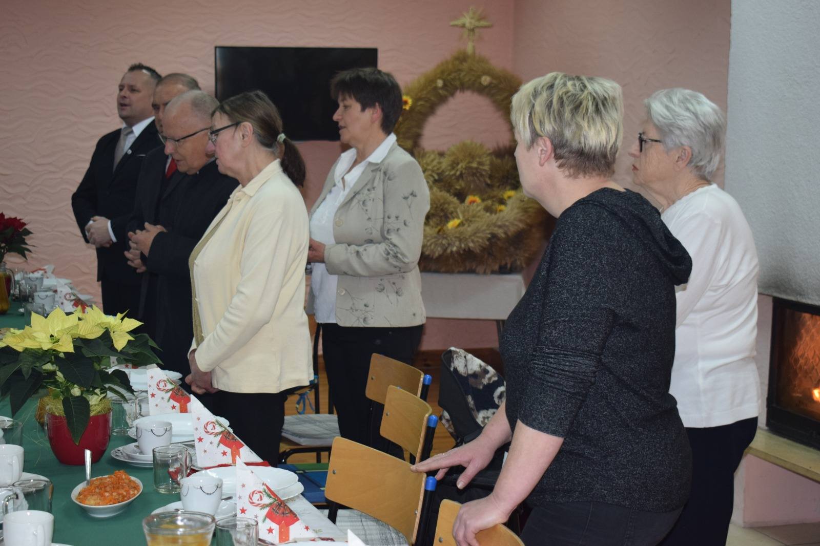 Opłatki, którymi dzielono się przy składaniu życzeń, pobłogosławił proboszcz parafii w Grodźcu ks. Zdzisław Banaś, a życzenia zdrowych i spokojnych Świąt Bożego Narodzenia oraz Szczęśliwego Nowego Roku złożyli wszystkim: Marcin Widera - Zastępca Burmistrza Ozimka oraz radny powiatowy Antoni Gryc.