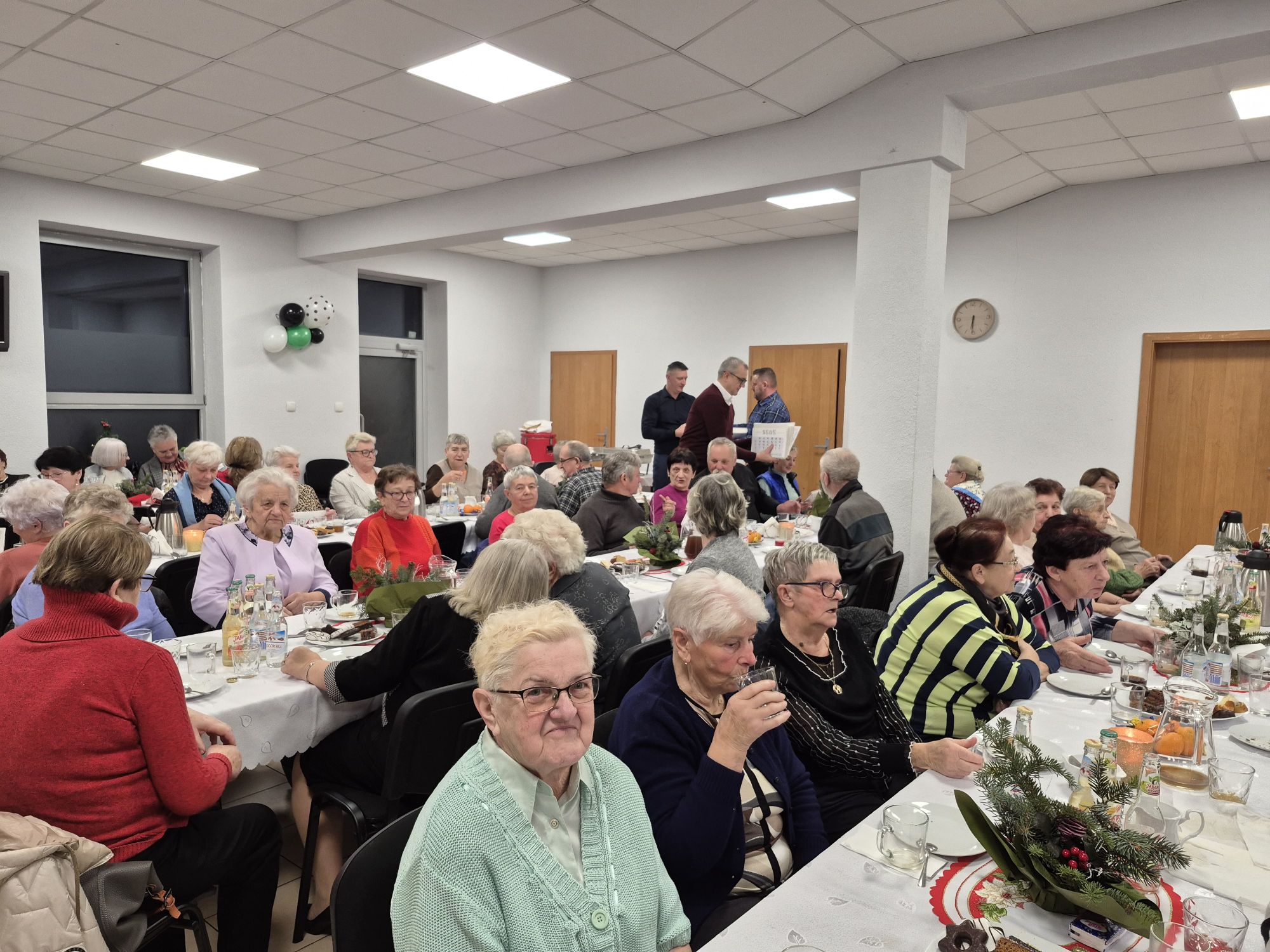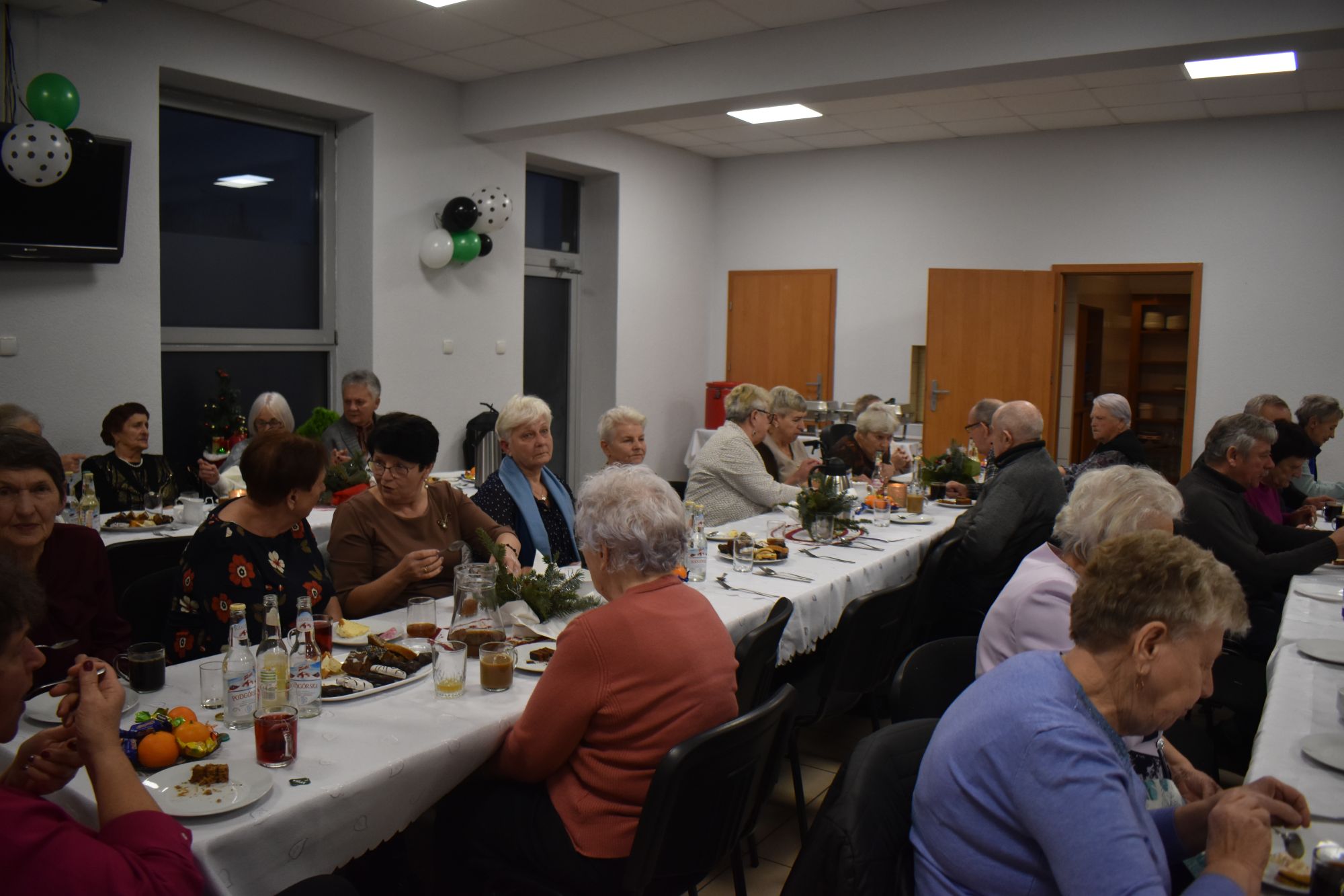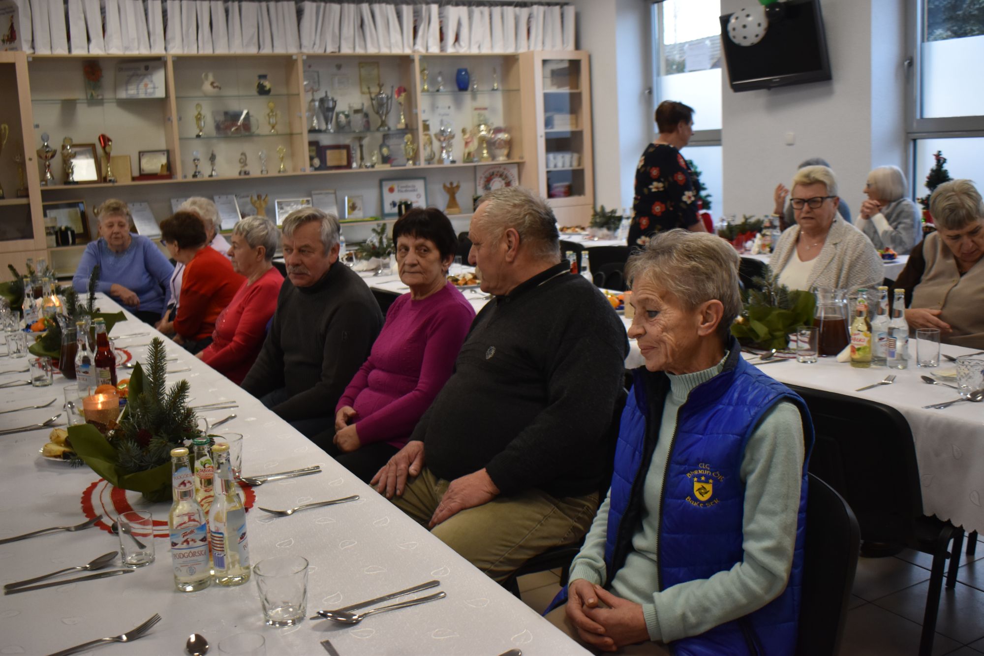 Po wspólnym podzieleniu się opłatkiem wszyscy zasiedli do wigilijnego stołu. Posiłek został przygotowany przez KGW „Mamy i My” – na stołach pojawił się tradycyjny barszcz z uszkami, ryba z ziemniakami i surówką, kompot z suszu oraz domowe wypieki.