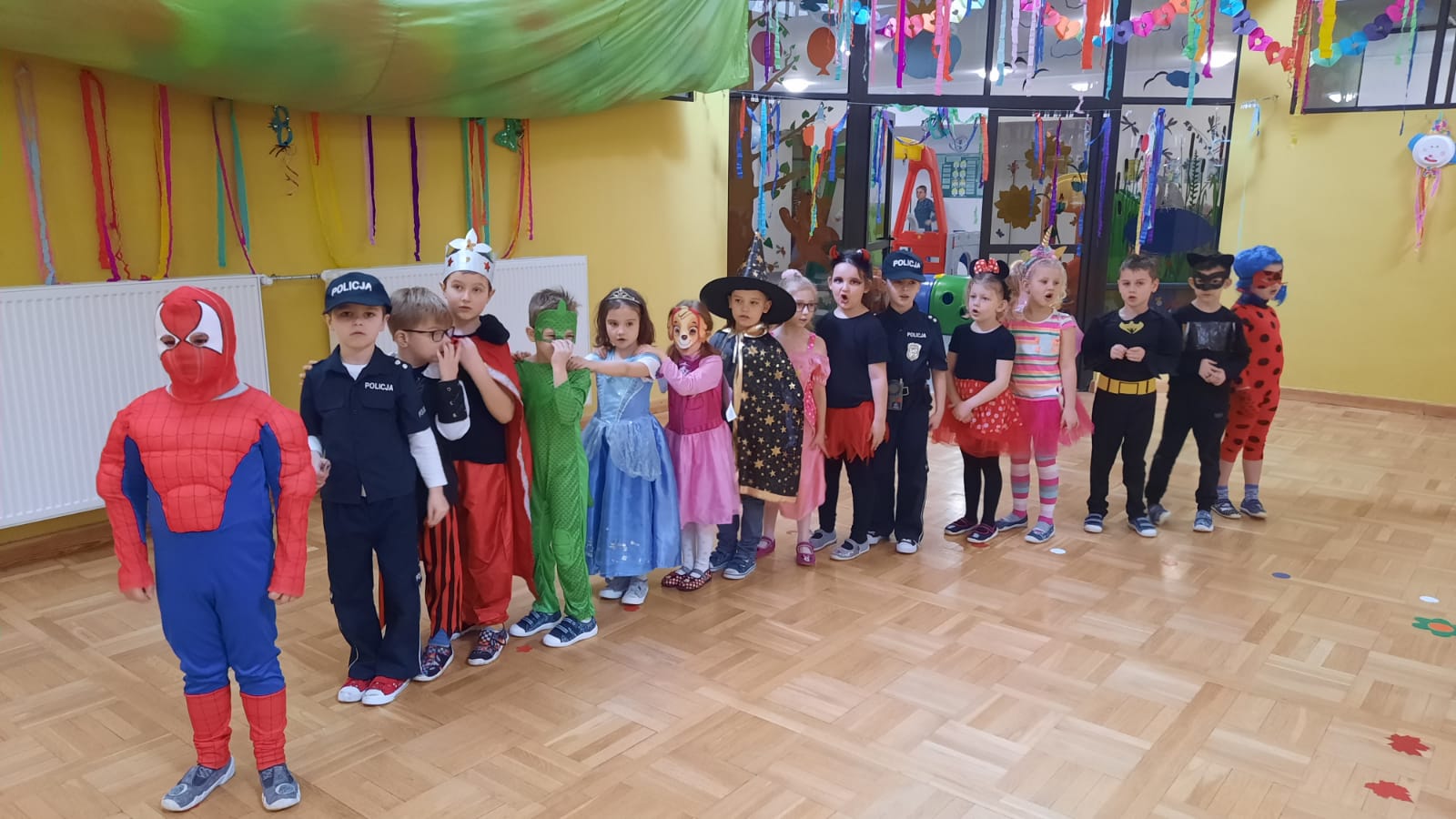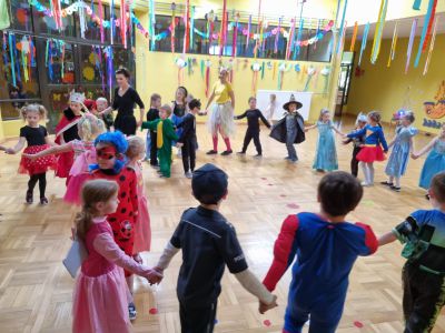 Aby tradycji stało się za dość,  przedszkolaki przybyły na bale  w pięknych bajkowych strojach. Nie zabrakło księżniczek, królewiczów, wróżek, Batmanów, Spidermanów oraz innych zaczarowanych postaci.Od samego początku wśród uczestników zabawy panowała miła i wesoła atmosfera. Poza tańcami dzieci uczestniczyły w licznych zabawach i konkursach, prezentowały swoje wspaniałe stroje. Jak na prawdziwy bal przystało na imprezowiczów czekały napoje oraz słodki poczęstunek.Czas płynął szybko, a śmiechom i tańcom nie było końca. Trudno było zakończyć tak wspaniałą zabawę i pogodzić się z myślą, że kolejna odbędzie się dopiero za rok.