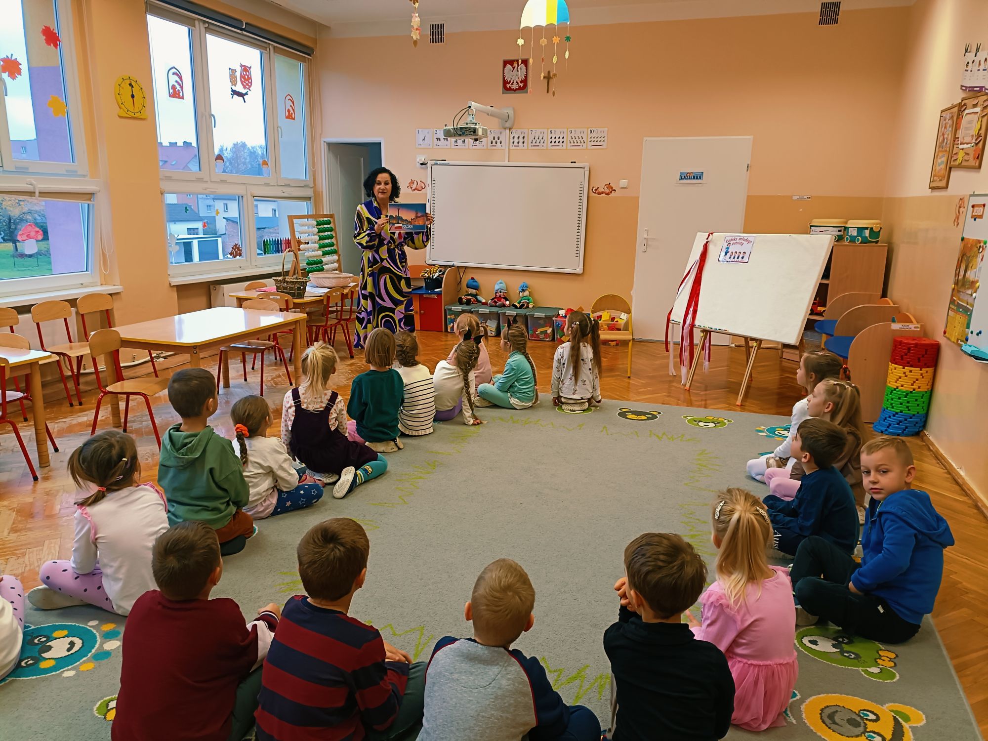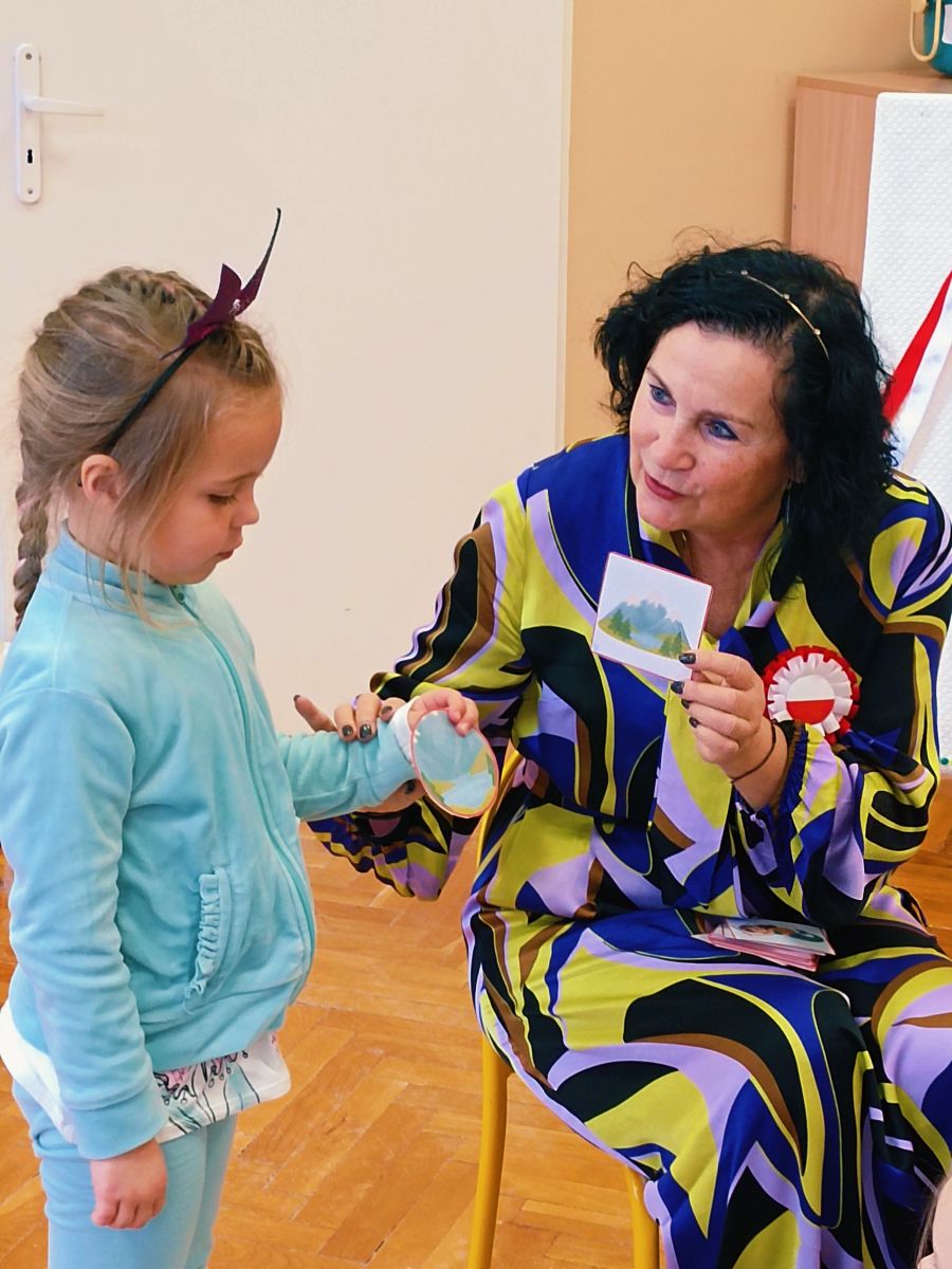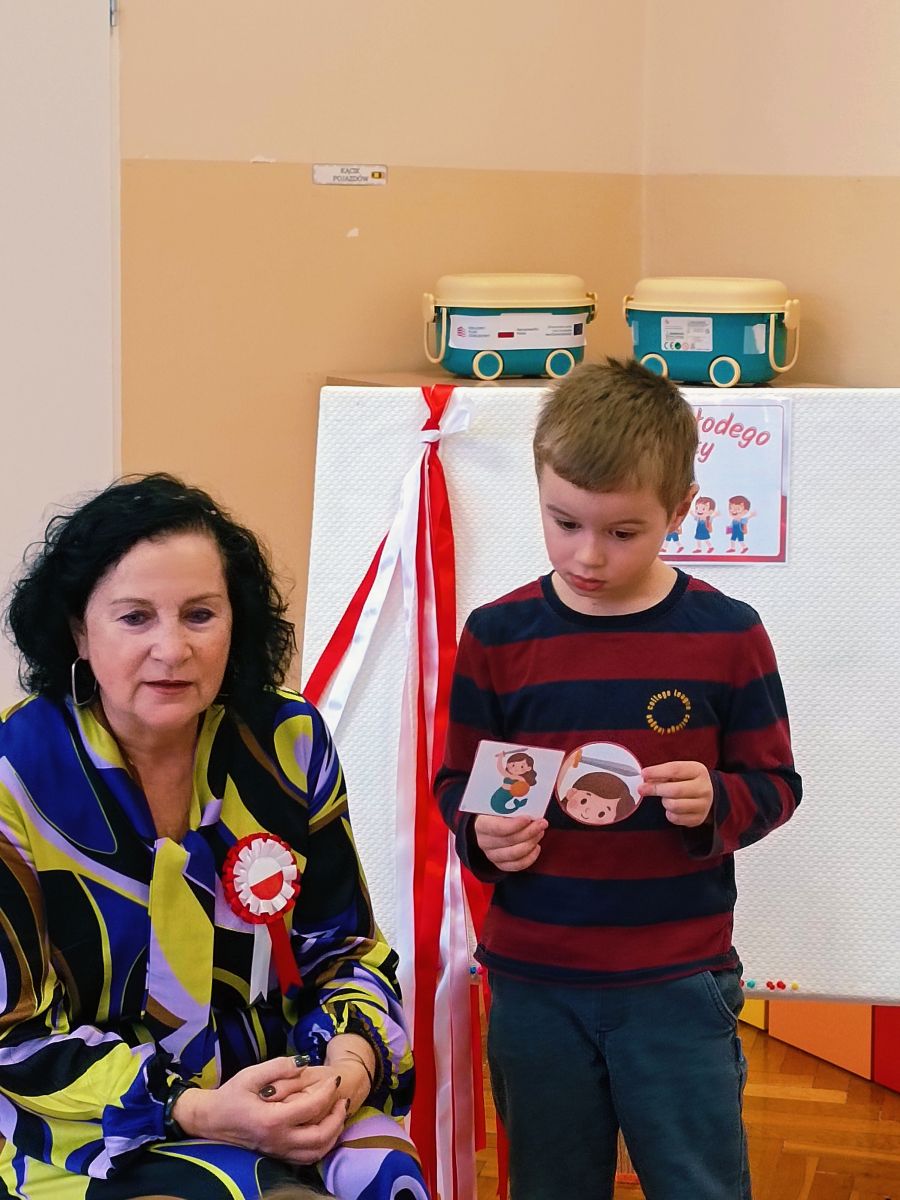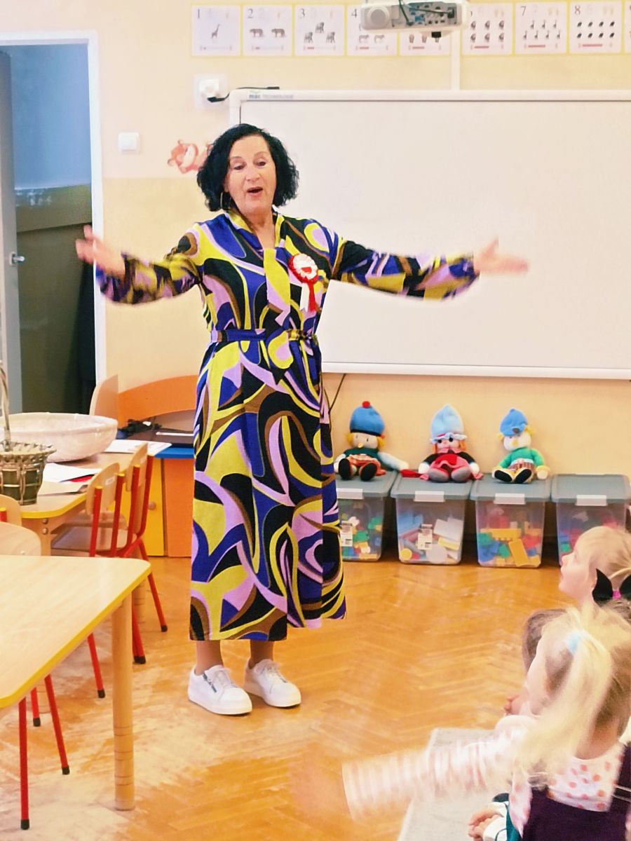 3 listopada 2025r.odwiedziła Przedszkole Publiczne Nr 1 w Ozimku , grupę Tygrysków pani Grażyna Świercz-bibliotekarka z Publicznej Szkoły Podstawowej Nr 1 w Ozimku.Za pomocą teatrzyku kamishibai przedstawiła dzieciom Legendę o powstaniu państwa polskiego –„O Lechu, Czechu i Rusie” Następnie zaprosiła przedszkolaki do quizu na temat państwa polskiego, tworzenia „Kodeksu małego patrioty” oraz odtańczenia fantazyjnego mazurka. Po zajęciach dzieci zostały nagrodzone słodkim upominkiem. Przedszkolaki wręczyły laurkę pani Grażynce w ramach podziękowań za kreatywne i bardzo pouczające zajęcia.