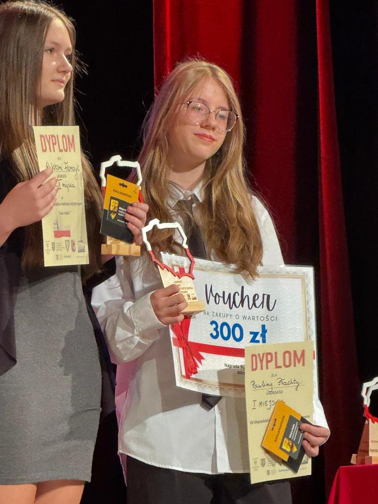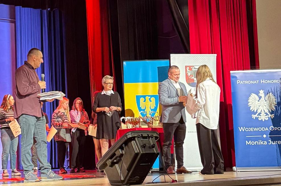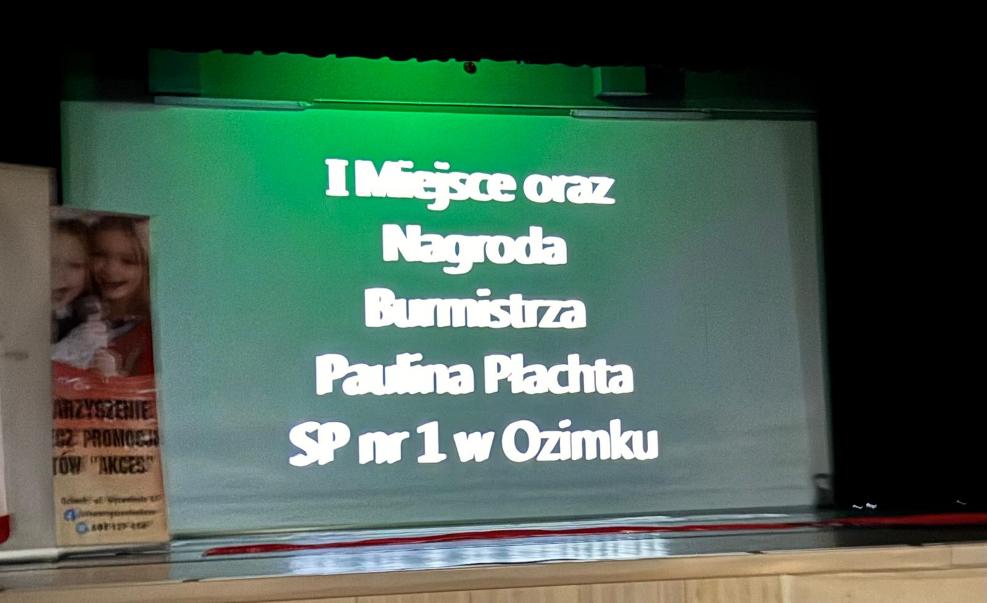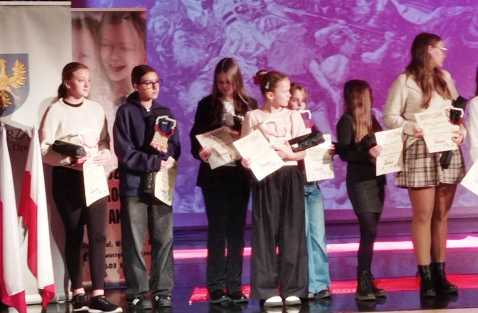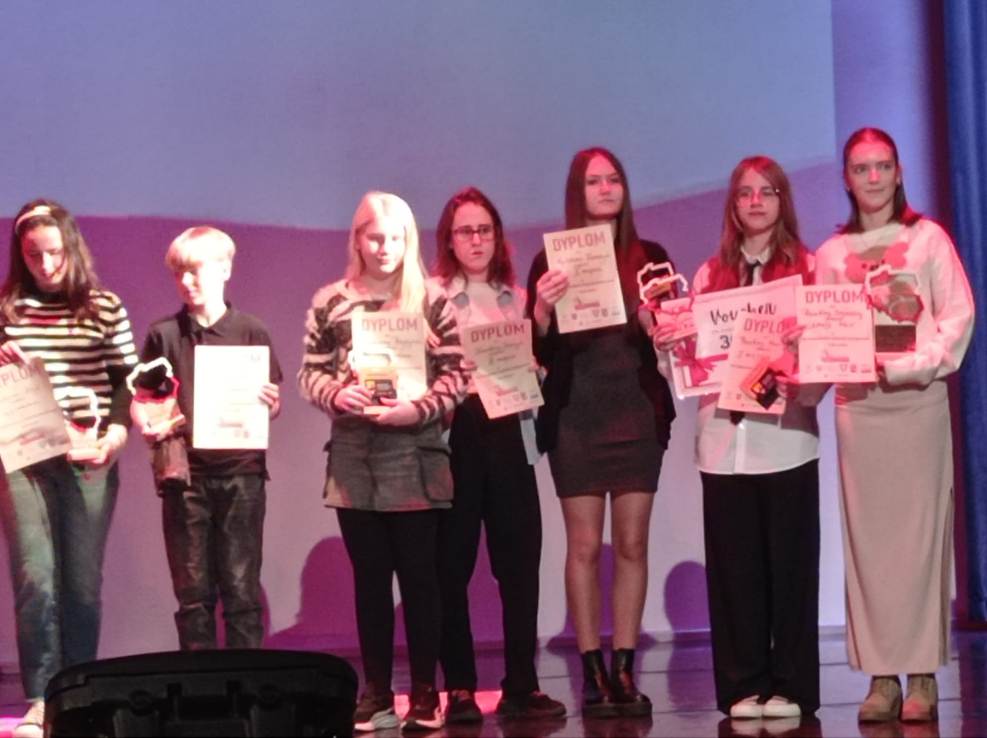 W sobotę, 8 listopada br., odbyła się gala VIII Festiwalu Artystycznego "Tobie Polsko" organizowanego przez Stowarzyszenie na Rzecz Promocji Talentów "Akces". Konkurs jest współfinansowany przez Województwo Opolskie. Z radością informujemy, że w kategorii plastycznej laureatką pierwszego miejsca została Paulina Płachta z klasy VIII, która otrzymała takze Nagrodę Burmistrza Ozimka. Wyróżnienia powędrowały do Eweliny Błażejewskiej, Magdaleny Przybylak oraz Mileny Naporowskiej. Wielkie brawa dla naszych Artystek.