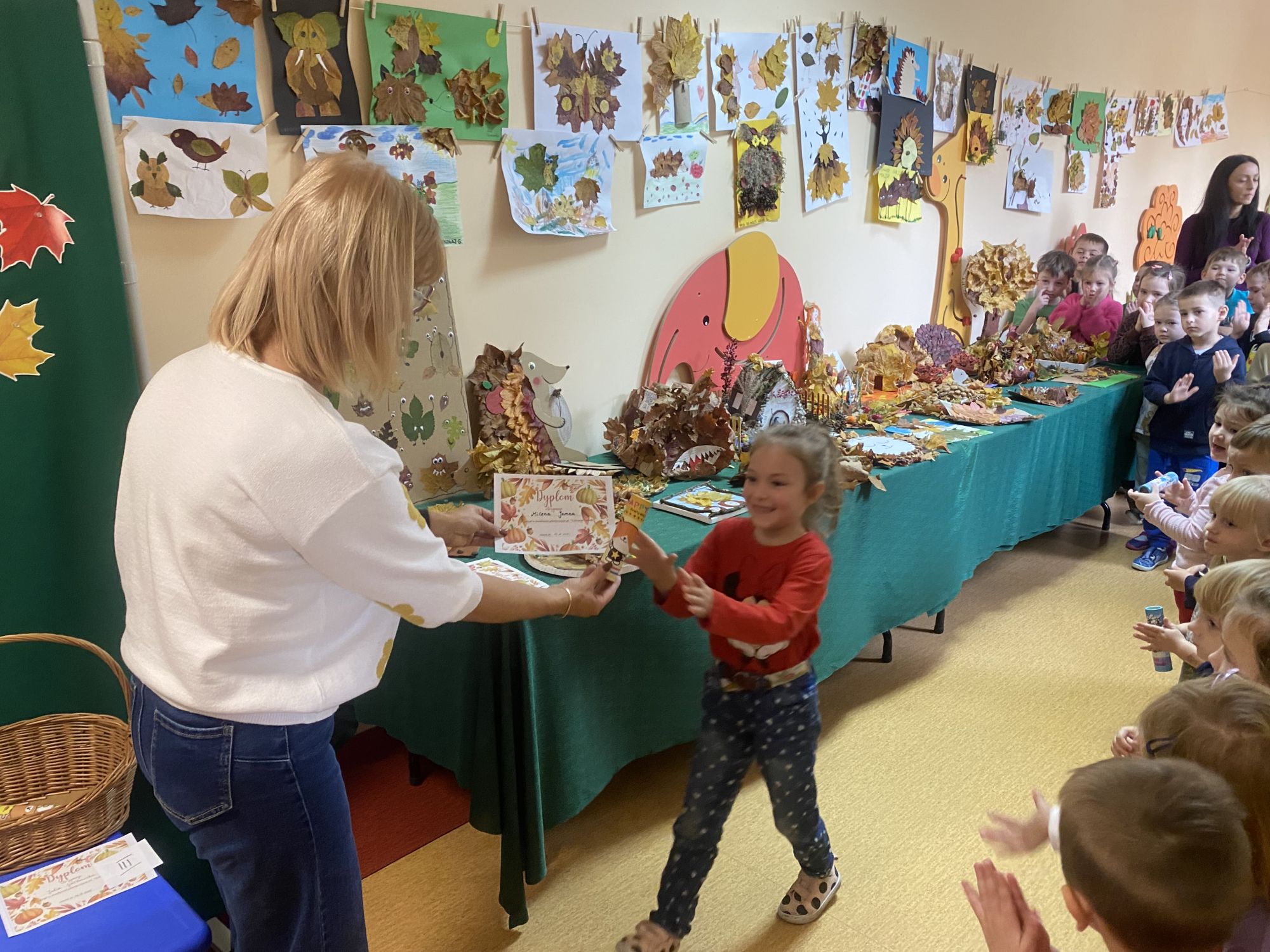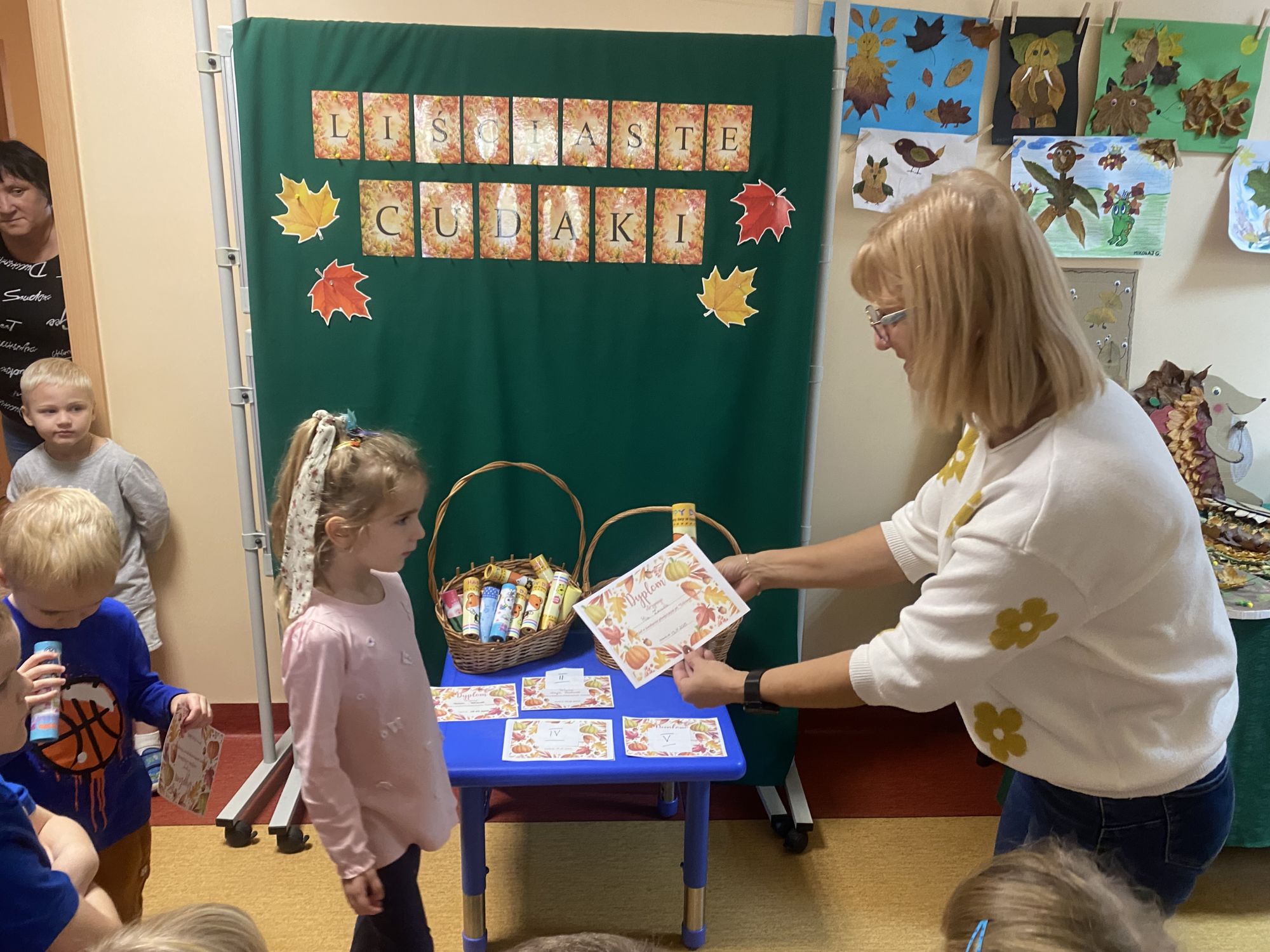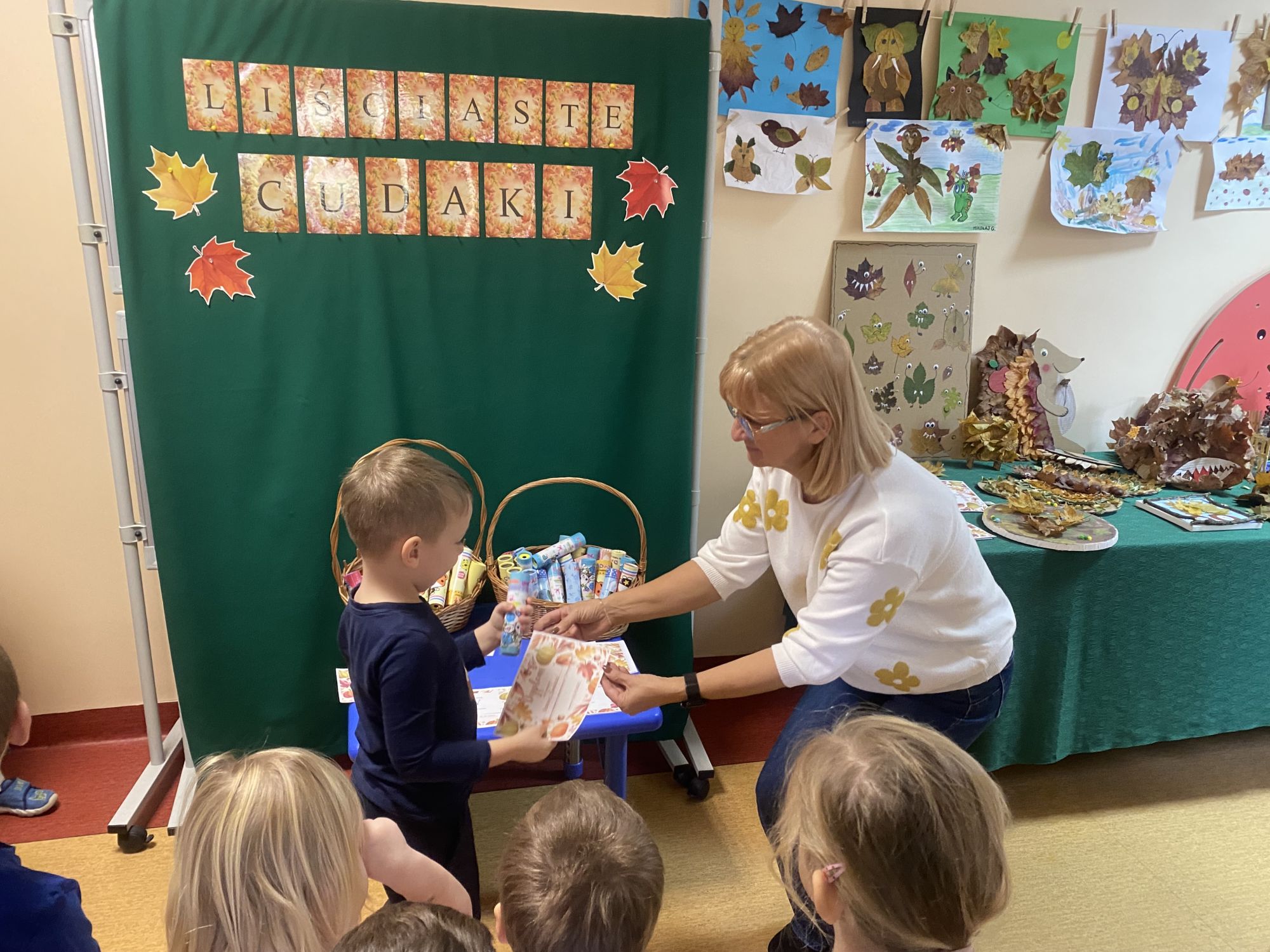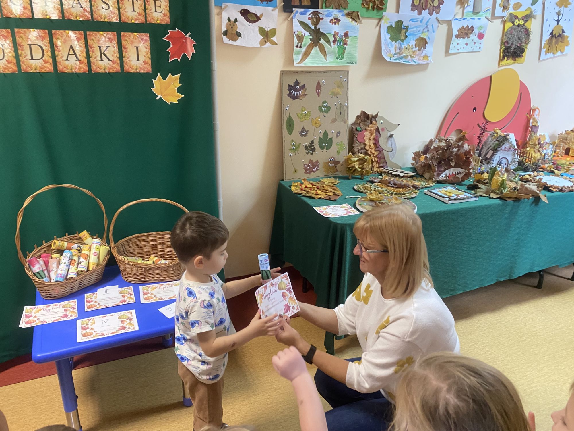 Dla każdego dziecka, które przygotowało swoją pracę, czekała miła niespodzianka – drobna nagroda i pamiątkowy dyplom. Gratulujemy wszystkim uczestnikom – liściaste cudaki były naprawdę cudowne!