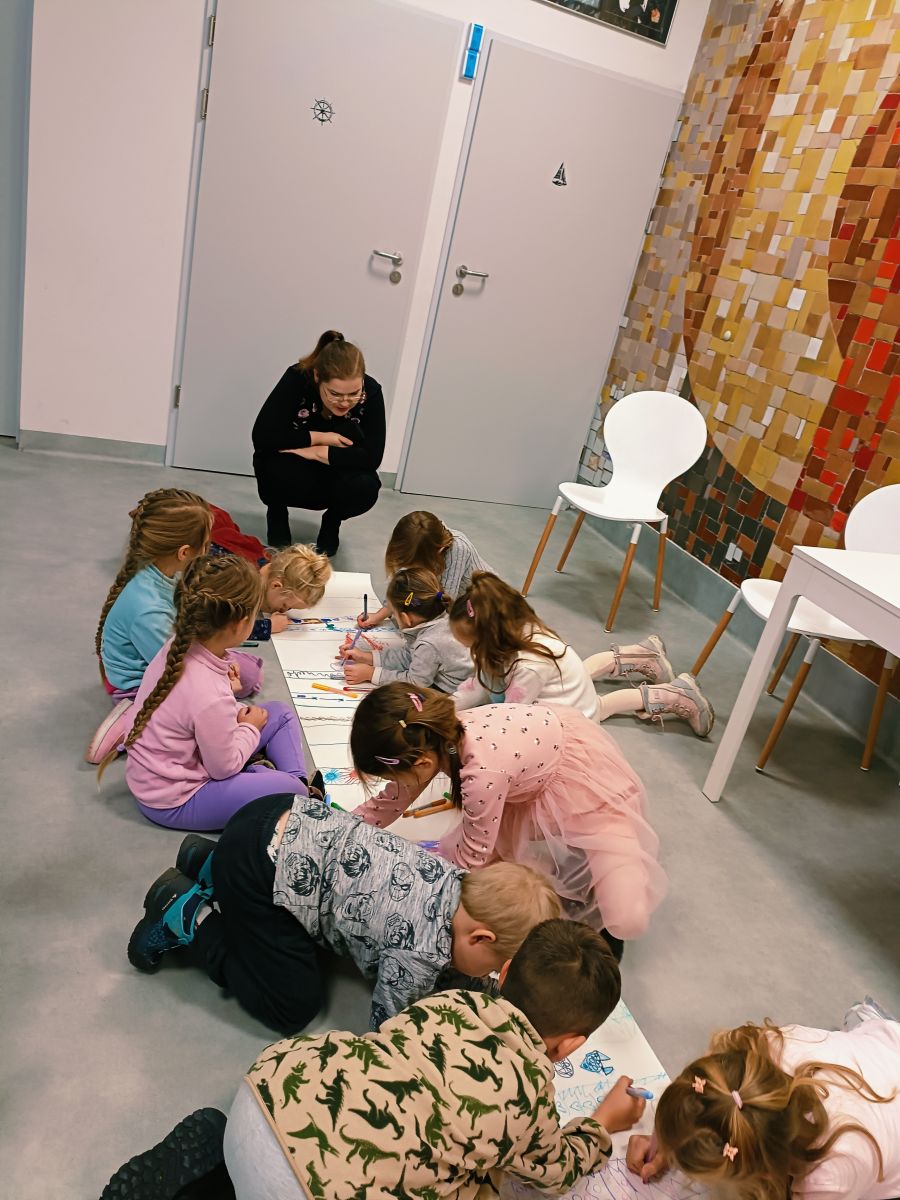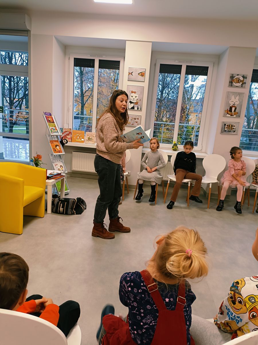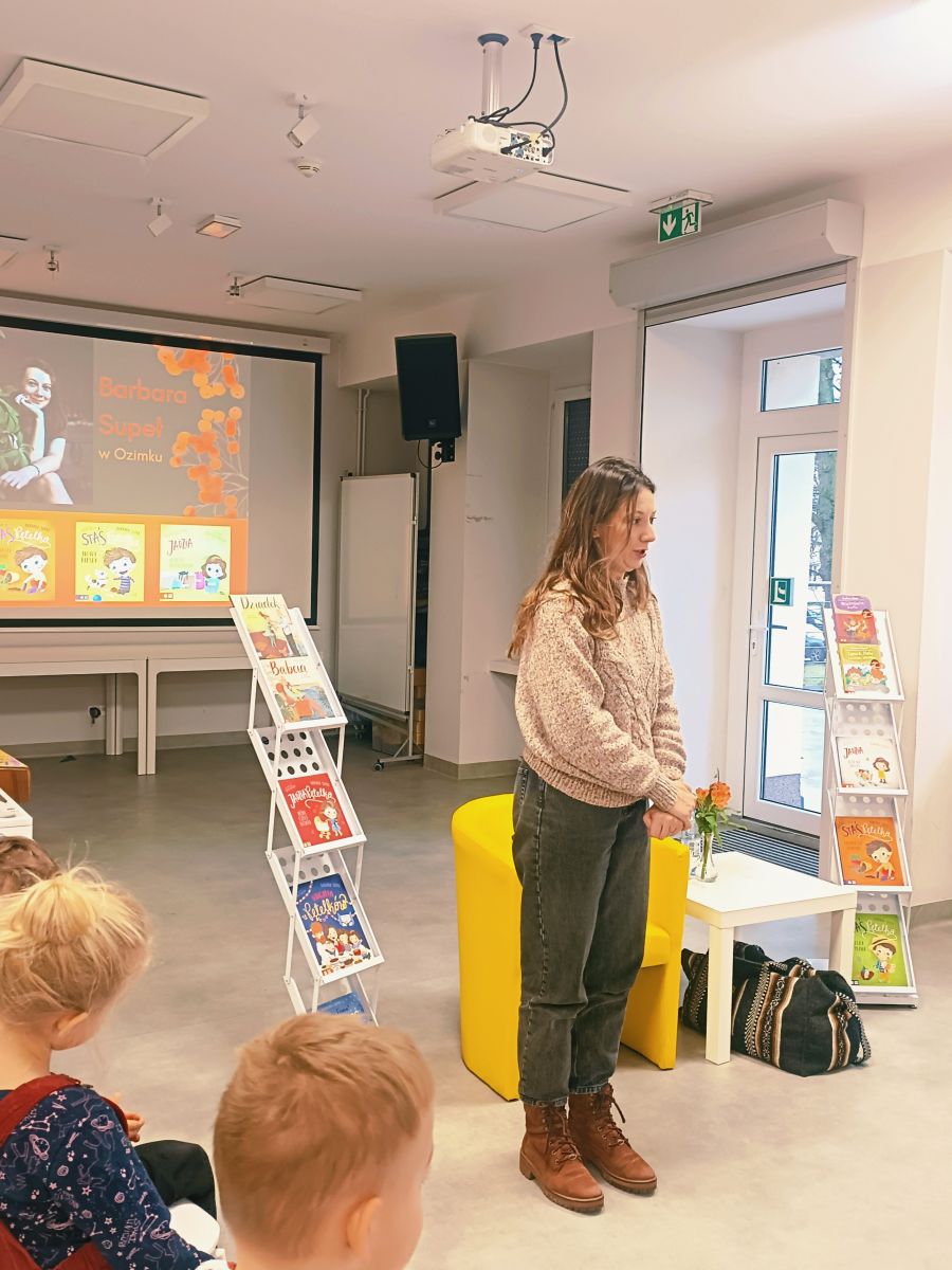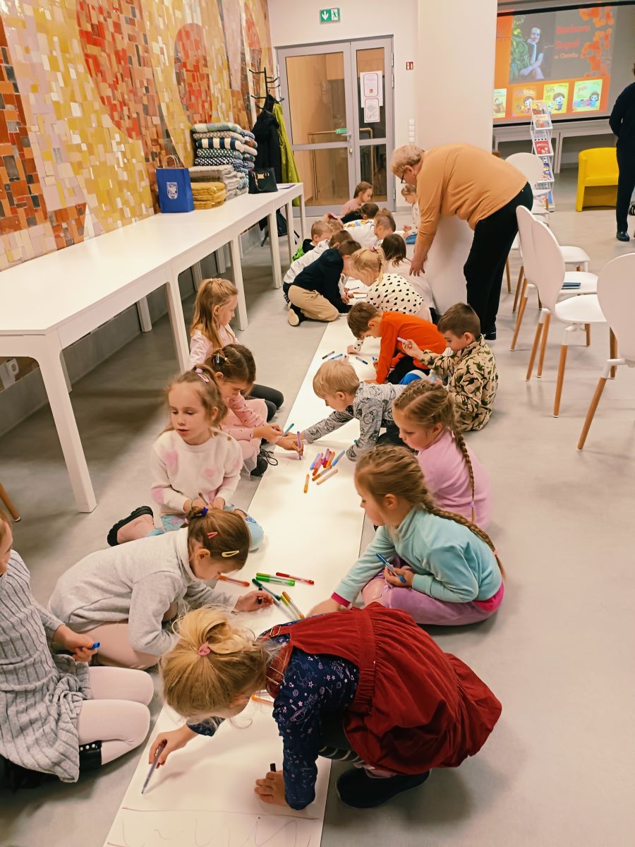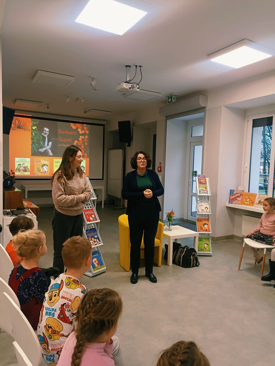 Dnia 17 listopada 2025r.przedszkolaki z Przedszkola Publicznego Nr 1 w Ozimku mieli ogromną przyjemność uczestniczyć w Bibliotece dziecięcej w Domu Kultury w Ozimku w spotkaniu autorskim - autorki książek dla dzieci Barbary Supeł. Pani Basia Supeł jest autorką jednej z najpopularniejszych serii książek o przygodach Jadzi Pętelki i jej brata Stasia. Uczestnicy spotkania mieli okazję wysłuchać fragmentów książek czytanych przez samą autorkę oraz poznać tajniki tworzenia historii zawartych w jej książkach. Pisarka zdradziła dzieciom, skąd czerpie pomysły do pisania utworów. Uczestnicy spotkania wzięli także udział w zabawach zaproponowanych przez naszego gościa. Spotkanie upłynęło w miłej, radosnej atmosferze, a dzieci nagrodziły pisarkę gromkimi brawami oraz podziękowaniem wykonanym przez dzieci. Możliwość spotkania na żywo autora ulubionych książek to duże przeżycie dla dzieci, które zostaje z nimi na długo. Takie spotkanie to również wspaniała okazja do zachęcenia dzieci do sięgania po książki i rozwijania w nich pasji do czytania.
