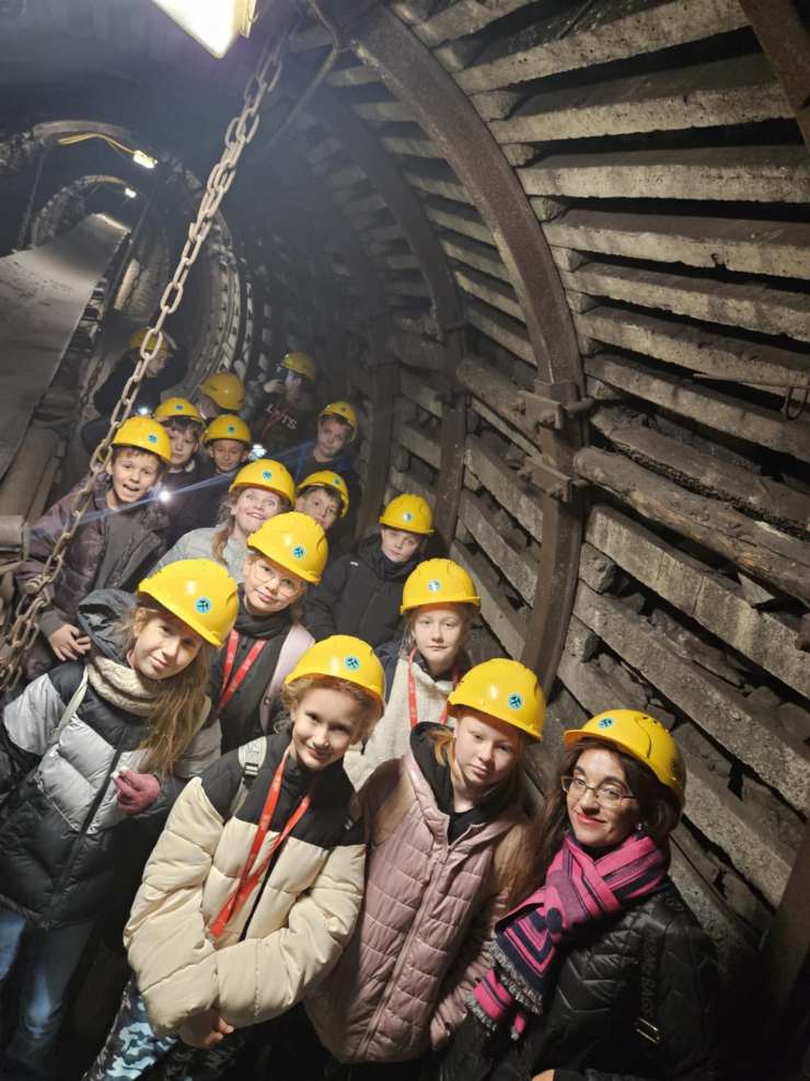 Wycieczka klas 4A i 4B do kopalni Guido- pełna emocji i wrażeń! Uczniowie klas 4a i 4b wybrali się dziś na wyjątkową wycieczkę pod opieką swoich wychowawców: pani Alesii Asmuskiny – wychowawczyni klasy 4a, pana Marka Kaziaka – wychowawcy klasy 4b oraz pani Karoliny Stręk – nauczyciela współorganizującego w klasie 4b. Już na początku dzieci z radością wybierały swoje pamiątki związane z kopalnią. Następnie dołączyła do nas pani przewodnik, która pomogła uczniom założyć kaski i przygotowała wszystkich do zjazdu, wprowadzając od razu ciepłą, ale pełną ciekawości atmosferę. Zjazd windą w dół dostarczył mnóstwa emocji — konstrukcja zatrzymywała się na każdym poziomie i lekko drżała, co wywoływało u dzieci dreszczyk ekscytacji i poczucie prawdziwej górniczej przygody. Na dole rozpoczęło się prawdziwe zwiedzanie. Pani przewodnik opowiadała o dawnych maszynach i ciężkiej pracy górników. Uczniowie mogli także zobaczyć manekina górnika Karola, który dzięki śpiewowi kanarka wiedział, ile tlenu znajduje się pod ziemią i czy praca w danym miejscu jest bezpieczna. Ogromne wrażenie zrobiła na dzieciach przejażdżka wagonikami kolejowymi, a tuż po niej pojawił się… Skarbnik! W żartobliwy sposób próbował wprowadzić odrobinę tajemnicy i delikatny dreszczyk grozy, opowiadając, że od wielu lat chodzi po kopalni. Na koniec jednak obdarował wszystkie dzieci bombonem – śląskim cukierkiem – i rozweselił całą grupę. Uczniowie otrzymali także pamiątkową kostkę zręcznościową, która od razu wywołała emocje i lekką rywalizację. Przed wyjazdem na powierzchnię zatrzymaliśmy się w górniczym barku, gdzie każdy mógł się posilić i napić. Następnie czekał nas kolejny emocjonujący przejazd windą w górę. Po wyjściu udaliśmy się na warsztaty, podczas których uczniowie tworzyli swoje własne torbo-plecaki przy użyciu przygotowanych szablonów i kolorowych pisaków. Ostatnim etapem i chyba największą atrakcją okazał się park trampolin Happy Jumper, gdzie dzieci mogły skakać, robić salta, przewroty, odbijać się od ścian, pokonywać miękkie tory przeszkód i lądować w basenie z piankami. Na zakończenie pełnego wrażeń dnia udaliśmy się na zasłużony posiłek do KFC. Wróciliśmy zmęczeni, ale szczęśliwi — zarówno uczniowie, jak i nauczyciele. To był naprawdę wspaniały dzień!A