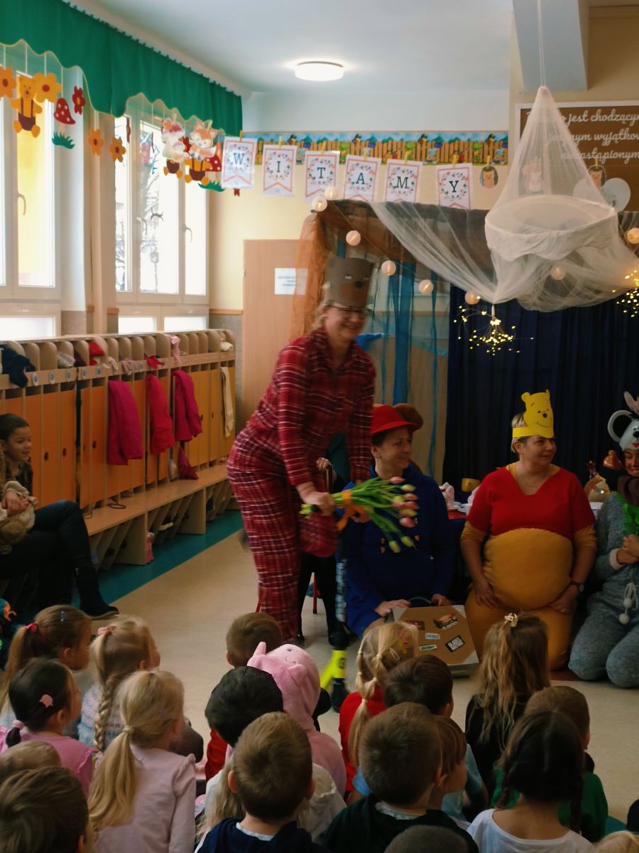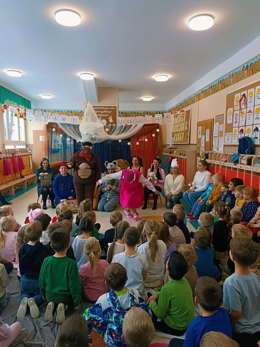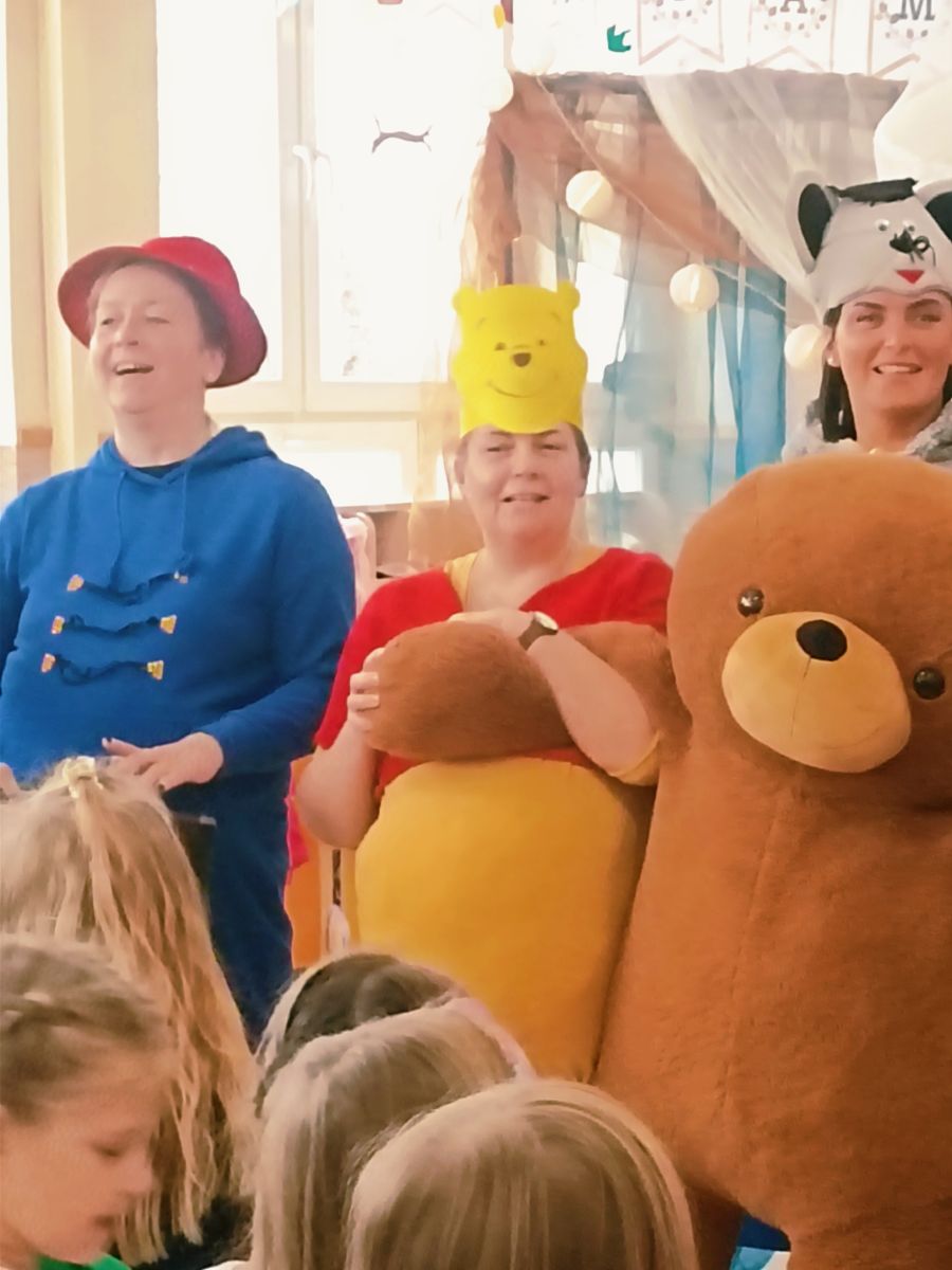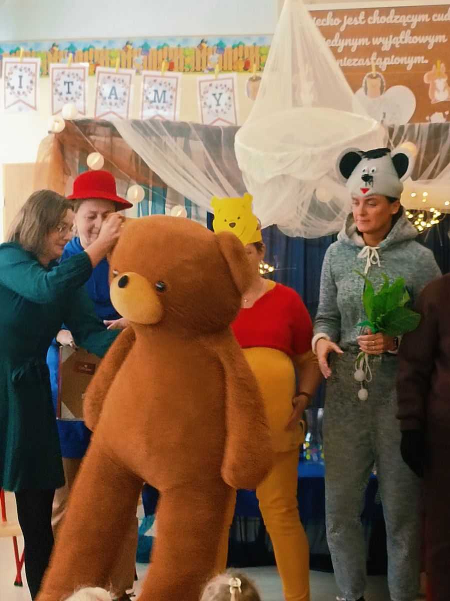 Z okazji zbliżającego się Święta Pluszowego Misia dnia 24 listopada 2025r. w Przedszkolu Publicznym Nr 1 w Ozimku kreatywni pracownicy przedszkola –nauczyciele , personel i niezawodna ekipa kuchni przedszkola stworzyli dla dzieci niesamowitą inscenizację „Urodziny Misia”. Pojawił się Kubuś Puchatek,Miś Uszatek,Biały Miś oraz inni bajkowi przyjaciele. Inscenizacji towarzyszyła znana i lubiana piosenka „Jadą,jadą misie… ”oraz jak na urodziny przystało gromkie sto lat odśpiewane przez wszystkich. Dzieci były zachwycone niespodzianką. Było dużo śmiechu ,ale także łzy wzruszenia. Aktorzy otrzymali gromkie brawa .Czego się nie robi dla naszych przedszkolaków…..