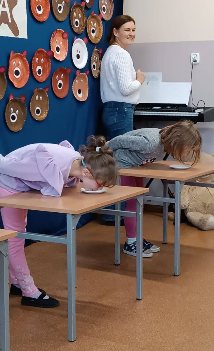 25 listopada w naszej szkole świętowaliśmy Dzień Pluszowego Misia! Cała szkoła wypełniła się puchatymi przyjaciółmi – od malutkich misiów po ogromne pluszaki! Uczniowie mieli okazję uczestniczyć w wielu zabawach i konkursach, które rozwijały wyobraźnię i kreatywność. Tworzyli własne misie z papierowych talerzyków, malując je i ozdabiając według własnego pomysłu. Rozwiązywali misiowe zagadki i łamigłówki, co wywołało mnóstwo radości i śmiechu. Śpiewali piosenki o misiach, ucząc się nowych rymowanek i melodii. Największą atrakcją okazały się tradycyjne zawody w „jedzeniu” miodu bez użycia rąk. Dzieci rywalizowały z wielkim zaangażowaniem, a publiczność nie mogła powstrzymać śmiechu, obserwując tę słodką rywalizację!