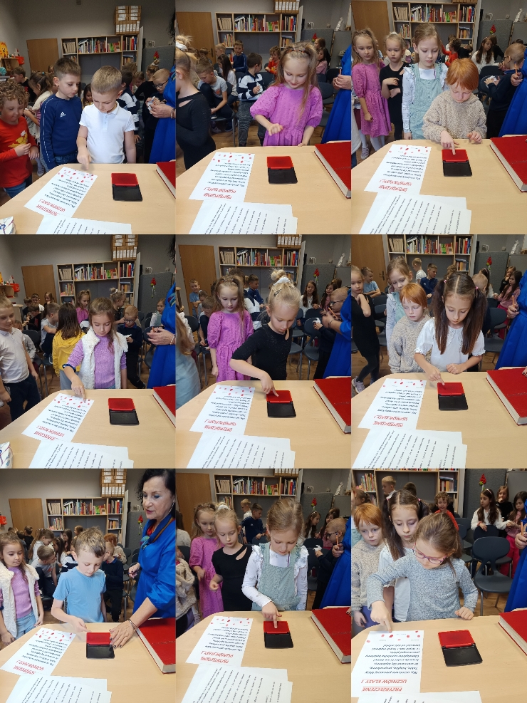 Potem przyszedł czas na uroczyste przyrzeczenie. Pierwszoklasiści obiecali szanować książki, czytać je często i nigdy nie robić im „psikusów”.