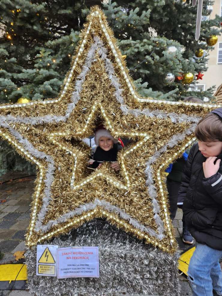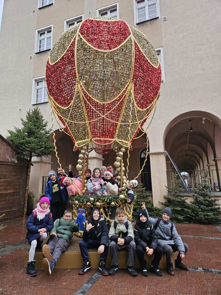 Po seansie klasa udała się na świąteczny spacer po opolskim jarmarku, gdzie można było podziwiać kolorowe dekoracje, poczuć zapach pierników i zobaczyć, jak miasto przygotowuje się do Bożego Narodzenia. Dużą atrakcją okazała się również odjazdowa przejażdżka kolejką, która dostarczyła dzieciom mnóstwo radości.