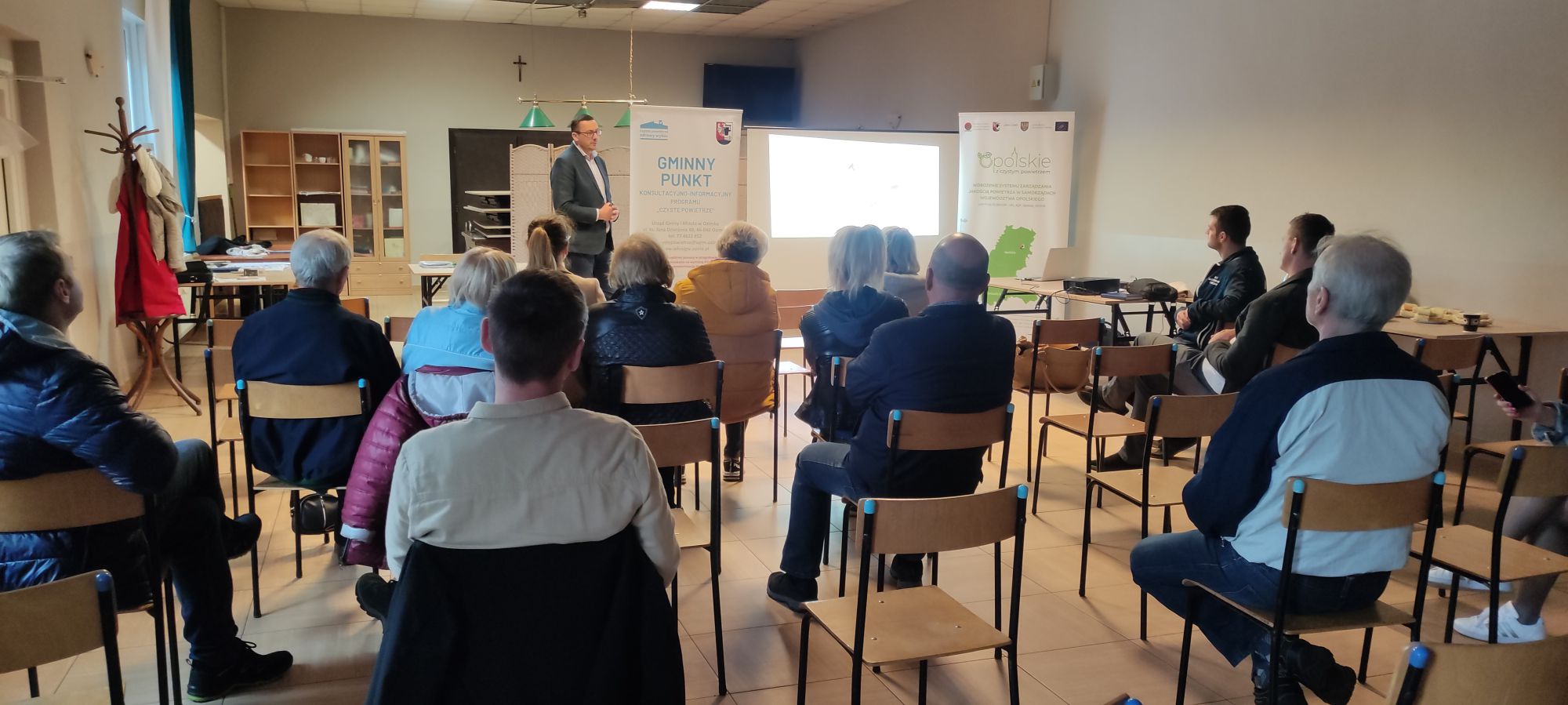 W pierwszym tygodniu kwietnia spotkaliśmy się z mieszkańcami Antoniowa i Jedlic. 7 kwietnia br. w Świetlicy wiejskiej w Antoniowie rozmawialiśmy o wpływie zanieszczenień powietrza na nasze zdrowie oraz możliwościach dofinansowań do wymiany pieca. O dofinansowaniu z Budżetu Gminy Ozimek opowiedział Gminny Koordynator Programu Ochrony Powietrza, natomiast o możlwości pozyskania dofinansowania z programu "Czyste powietrze" mówił Kierownik zespołu doradztwa energetycznego Wojewódzkiego Funduszu Ochrony Środowiska i Gospodarki Wodnej w Opolu Pan Dariusz Grabowiecki.