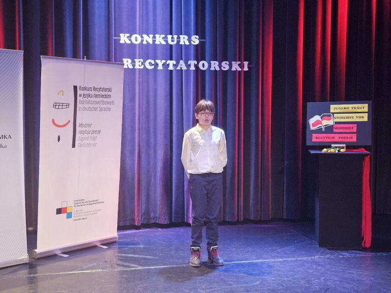 W tegorocznych eliminacjach szkolnych w naszej gminie wzięło udział łącznie 45 uczniów z 7 szkół podstawowych. Do eliminacji miejsko-gminnych zakwalifikowały się 23 osoby. Jednak z uwagi na sezon chorobowy ostatecznie na scenie naszego domu kultury zaprezentowało się 20 uczestników. Każdy z nich recytował z pamięci przed zebraną publicznością i jury dwa wybrane przez siebie wiersze w języku niemieckim. Komisja w składzie: Marcin Widera, Michael Oster oraz Daniel Bewko wnikliwie oceniła młodych recytatorów biorąc pod uwagę: wymowę, intonację, interpretację oraz dobór repertuaru. Przyznano następujące miejsca i wyróżnienia: