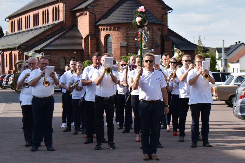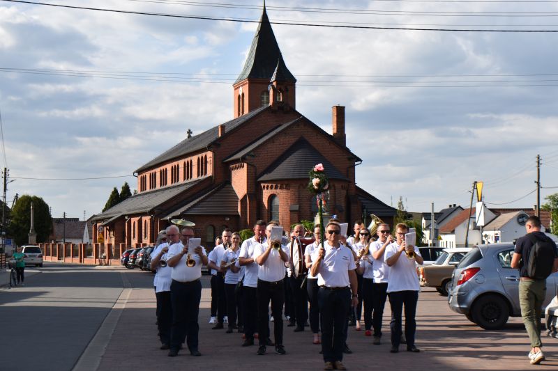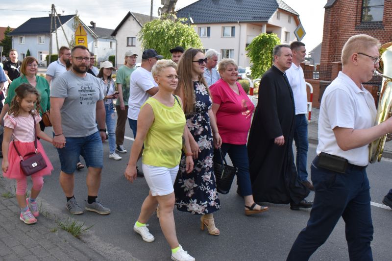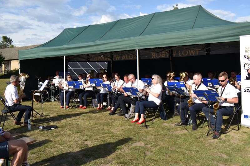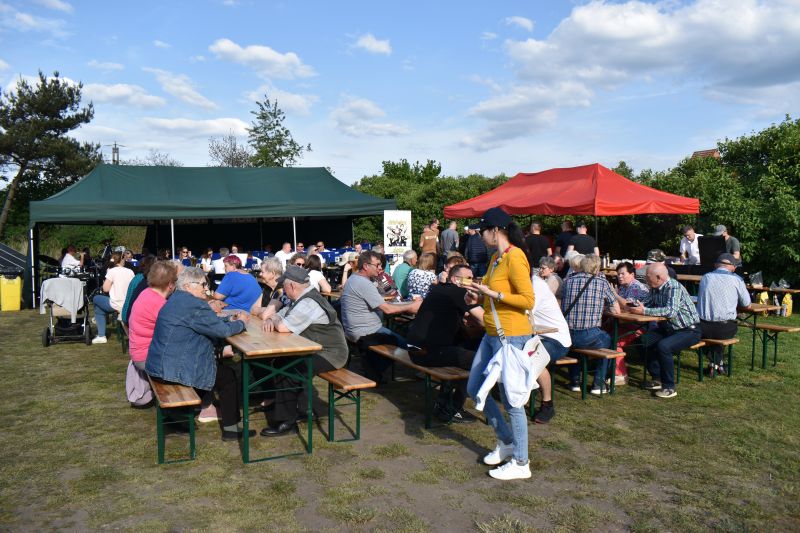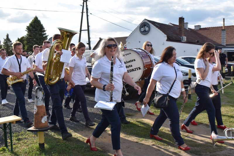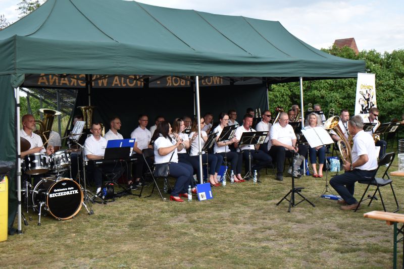 W resturacyjnym ogródku czekały na mieszkańców stoły biesiadne oraz poczęstunek. Sołtyska jeszcze raz wszystkich oficjalnie przywitała, w szczególności księdza proboszcza Krzysztofa Matyska, a także podziękowała za gościnę właścicielom Miejscowej Klapsznity - Jolancie i Michałowi Rudolfom. Słowa podziękowania zostały również skierowane do członków rady sołeckiej oraz wszystkim darczyńcom, którzy wsparli organizację festynu. Orkiestra Dęta Szczedrzyk uraczyła zgromadzonych koncertem ze znanymi przebojami, dzięki któremu kolejny festyn stawiania Drzewka Majowego można zaliczyć do udanych.