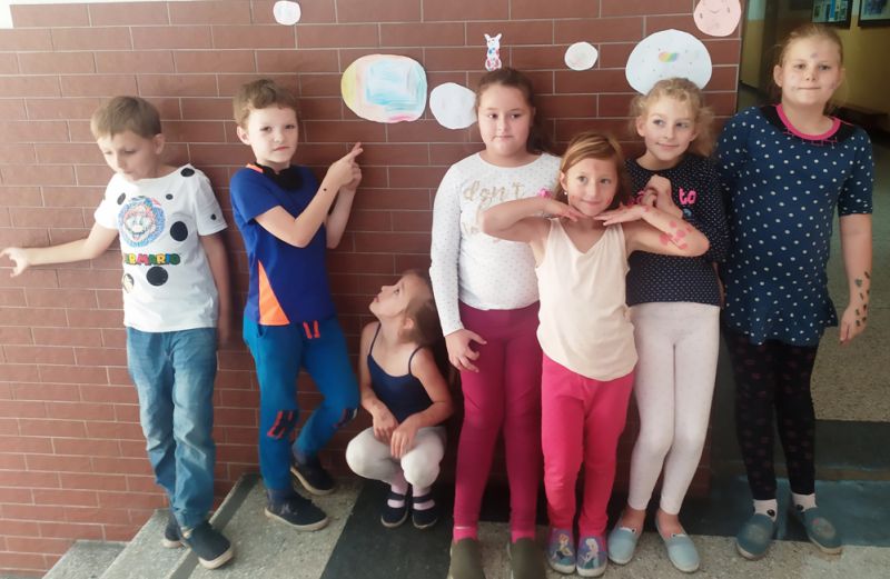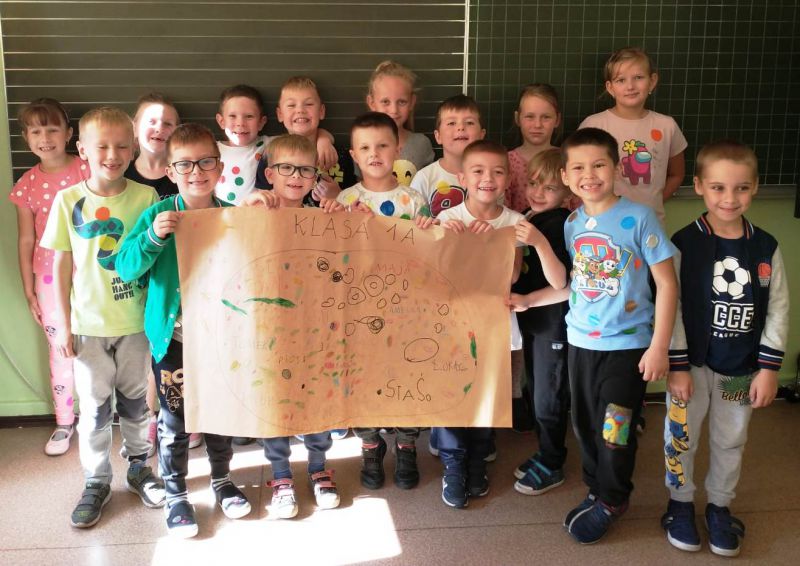 Na czym polega fenomen Dnia Kropki? Dzień, kiedy malujemy kropki, ubieramy się w kropki i tworzymy swoje kropki. Najważniejsze jednak jest to, że rozmawiamy z dziećmi o tym, co ich interesuje, co lubią robić i jakie mają talenty! Przecież każdy z nas ma swoje mocne strony, a najważniesza jest wiara we własne siły i możliwości. Ta historia małej kropki pokazuje, że każdy nasz talent może zostać odkryty, wystarczy wiara w siebie, pracowitość i zapał. Uczniowie dzisiaj ubrali się w kropki, przyklejali sobie kropki, rysowali kropki klasowe i te osobiste, przyozdobili kropkami szkolny korytarz i dziedziniec. I uwierzyli w siebie!