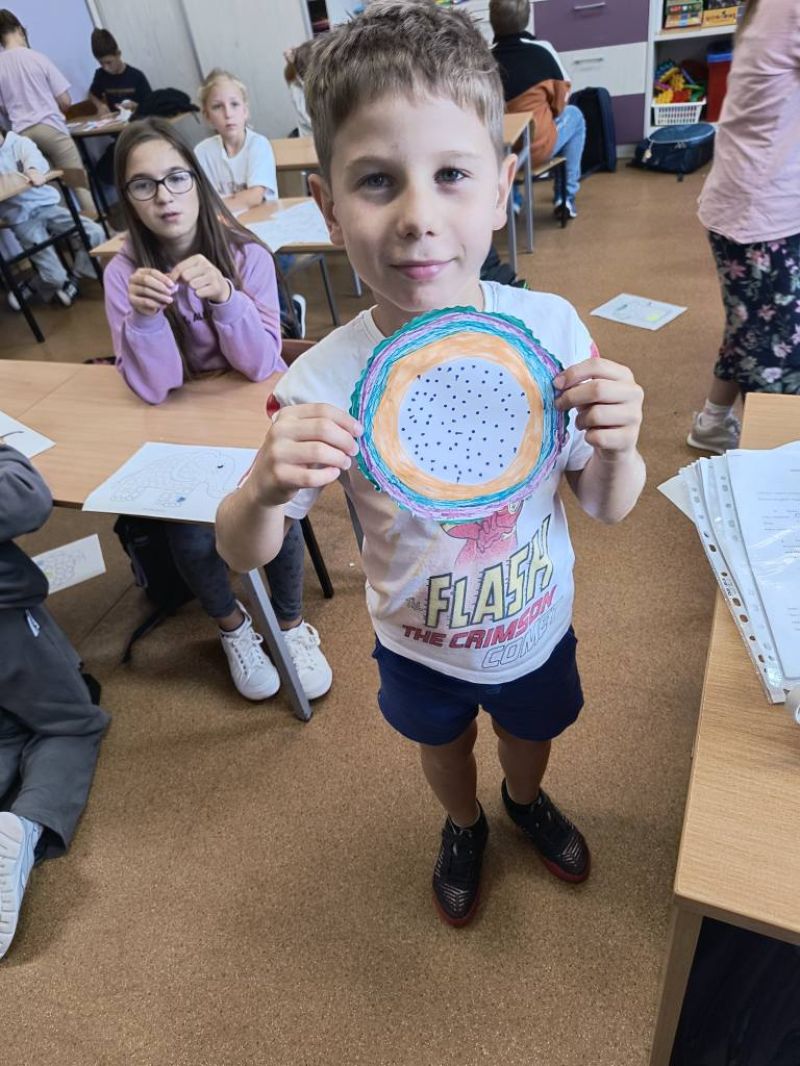 Dzień Kropki- święto kreatywności 15 września obchodzimy Międzynarodowy Dzień Kropki. Święto to powstało z inspiracji książką Petera H. Reynoldsa „The Dot”, której bohaterka Vashti dzięki jednej kropce odkryła swój twórczy potencjał. Ta historia przypomina nam, że każdy ma w sobie talent i odwagę, by tworzyć. W naszym oddziale przedszkolnym i szkole uczciliśmy ten dzień zabawą, radością i kreatywnością! Dzieci uczestniczyły w kropkowych zabawach pełnych ruchu i uśmiechu. Brały udział w zajęciach plastycznych, podczas których powstały barwne i wyjątkowe prace. Układały kompozycje z kropek, pokazując, że dziecięca wyobraźnia potrafi naprawdę zaskakiwać. Kolory, dobra energia i odkrywanie, że nawet mała kropka może stać się początkiem czegoś wyjątkowego – tak można podsumować ten inspirujący dzień.