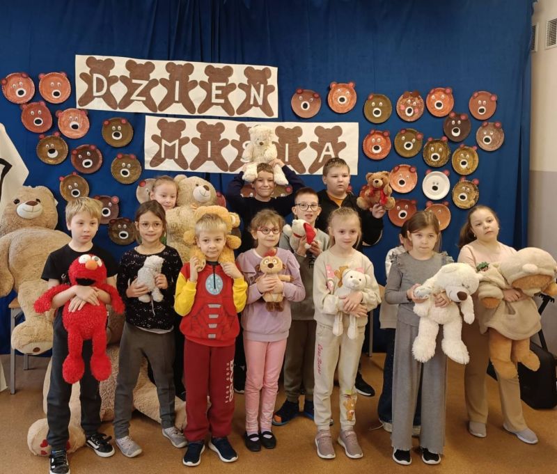 25 listopada w naszej szkole świętowaliśmy Dzień Pluszowego Misia! Cała szkoła wypełniła się puchatymi przyjaciółmi – od malutkich misiów po ogromne pluszaki! Uczniowie mieli okazję uczestniczyć w wielu zabawach i konkursach, które rozwijały wyobraźnię i kreatywność. Tworzyli własne misie z papierowych talerzyków, malując je i ozdabiając według własnego pomysłu. Rozwiązywali misiowe zagadki i łamigłówki, co wywołało mnóstwo radości i śmiechu. Śpiewali piosenki o misiach, ucząc się nowych rymowanek i melodii. Największą atrakcją okazały się tradycyjne zawody w „jedzeniu” miodu bez użycia rąk. Dzieci rywalizowały z wielkim zaangażowaniem, a publiczność nie mogła powstrzymać śmiechu, obserwując tę słodką rywalizację!