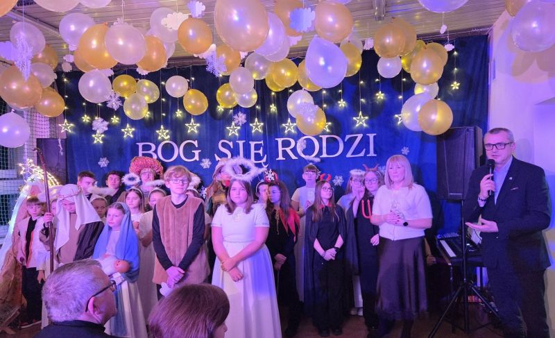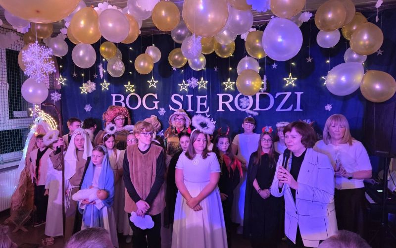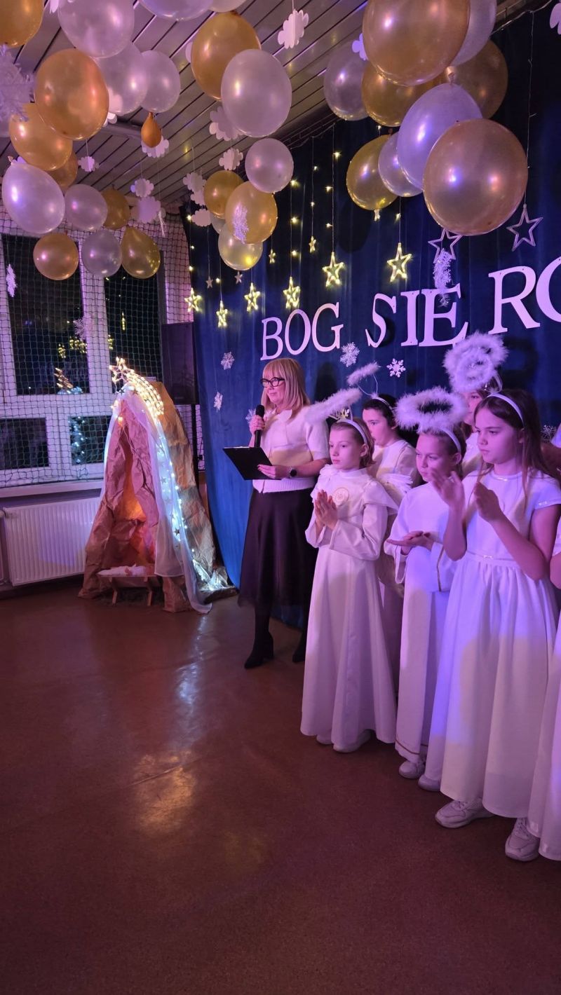 grudnia w Szkole Podstawowej nr 2 odbyły się wyjątkowe jasełka, przygotowane z myślą o całej społeczności szkolnej oraz lokalnej. Wydarzenie zgromadziło uczniów, nauczycieli, rodziców oraz licznych zaproszonych gości, tworząc atmosferę pełną wzruszenia, radości i świątecznej refleksji. Centralnym punktem przedstawienia była scena Narodzenia Jezusa, która w poruszający i symboliczny sposób ukazała istotę Bożego Narodzenia. Młodzi aktorzy z ogromnym zaangażowaniem wcielili się w swoje role, oddając klimat betlejemskiej nocy. Szczególne emocje wzbudził śpiew aniołów, który wprowadził zgromadzonych w podniosły nastrój i przypomniał o przesłaniu miłości, pokoju i nadziei. Ważnym elementem wydarzenia była także inicjatywa Samorządu Uczniowskiego, który przygotował świąteczny kiermasz. Goście mogli zakupić ręcznie robione ozdoby oraz pachnące pierniczki, wykonane z wielkim sercem i starannością przez uczniów. Zespół ds. Promocji przygotował kawiarenkę, w której na gości czekała aromatyczna kawa, pyszna zimowa herbatka oraz domowe wypieki, sprzyjające rozmowom i wspólnemu świętowaniu. Podczas uroczystości głos zabrała pani dyrektor Anna Gaszczyk, która skierowała do zgromadzonych pełne ciepła, radości i miłości życzenia świąteczne. W swoim wystąpieniu podkreśliła, jak ważny jest czas Świąt Bożego Narodzenia – czas refleksji, bliskości, życzliwości i wzajemnego wsparcia. Swoje przemówienie wygłosił również pan Mirosław Wieszołek - Burmistrz Ozimka, który podziękował uczniom i nauczycielom za przygotowanie pięknych jasełek oraz złożył wszystkim obecnym serdeczne życzenia świąteczne. Głos zabrała także pani Leonarda Płoszaj - Wicestarosta Opolski, podkreślając znaczenie kultywowania tradycji bożonarodzeniowych oraz wspólnotowego charakteru wydarzenia. Wśród zaproszonych gości obecnych na uroczystości znaleźli się również: ks. proboszcz Marian Demarczyk, pan Zygmunt Olbryt – Przewodniczący Rady Miejskiej, pan Antoni Gryc – Radny Powiatu Opolskiego,