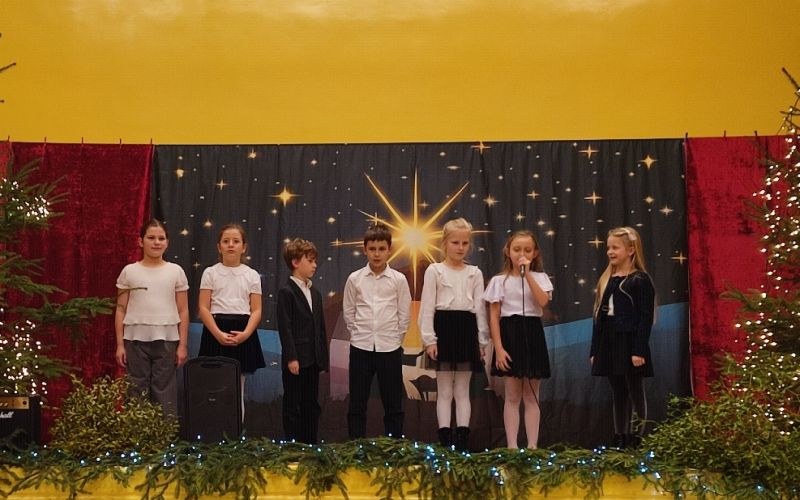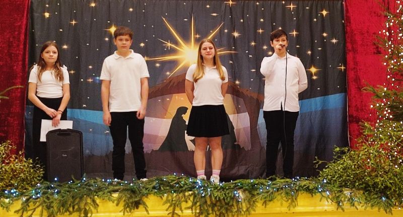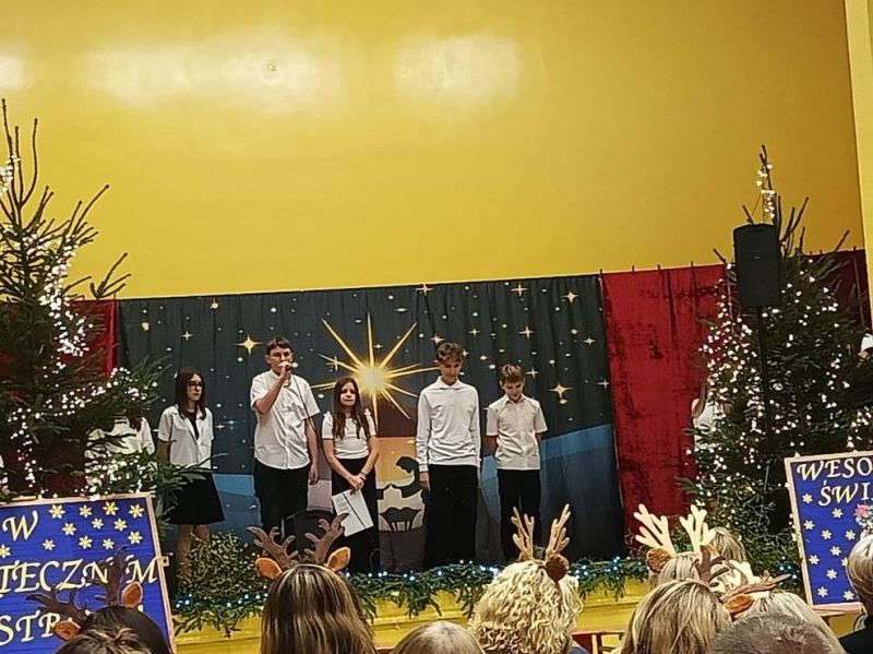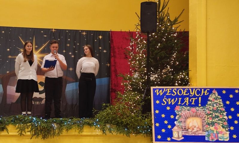 Wydarzenie uświetniły występy uczniów naszej szkoły. W świąteczny nastrój wszystkich uczestników wprowadziło przedstawienie przygotowane przez uczniów klas 2 i 7, które spotkało się z bardzo ciepłym przyjęciem publiczności . Następnie odbył się koncert świąteczny, pełen kolęd i piosenek bożonarodzeniowych .