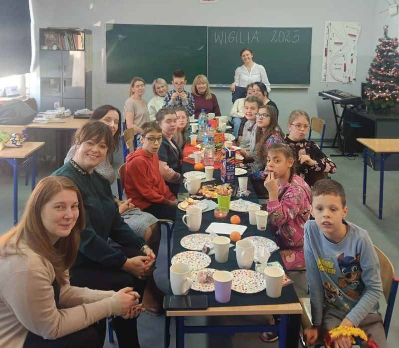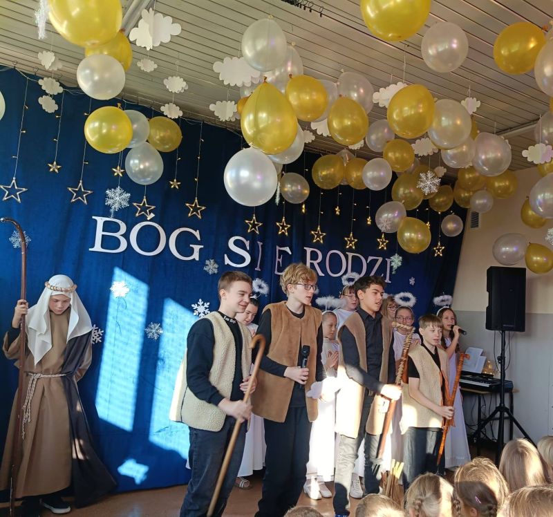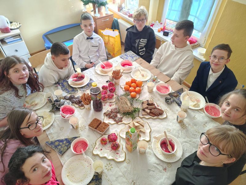 W czwartek uczniowie mieli okazję obejrzeć piękne jasełka, przygotowane z ogromnym zaangażowaniem przez swoje koleżanki i kolegów. Przedstawienie wprowadziło wszystkich w klimat Betlejem, przypominając o tym, co w świętach najważniejsze – miłości, dobroci i bliskości drugiego człowieka. Tego samego dnia odbyła się również wyjątkowa wigilia uczniów z niepełnosprawnościami. Był to czas pełen ciepła, uśmiechów i wzajemnej życzliwości, który pokazał, jak ważna jest wspólnota i integracja.